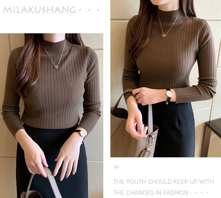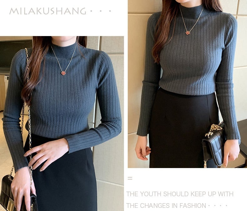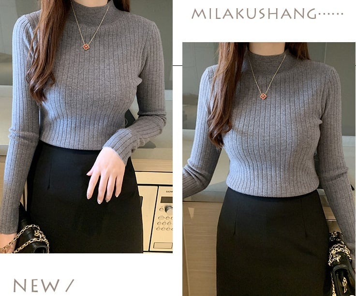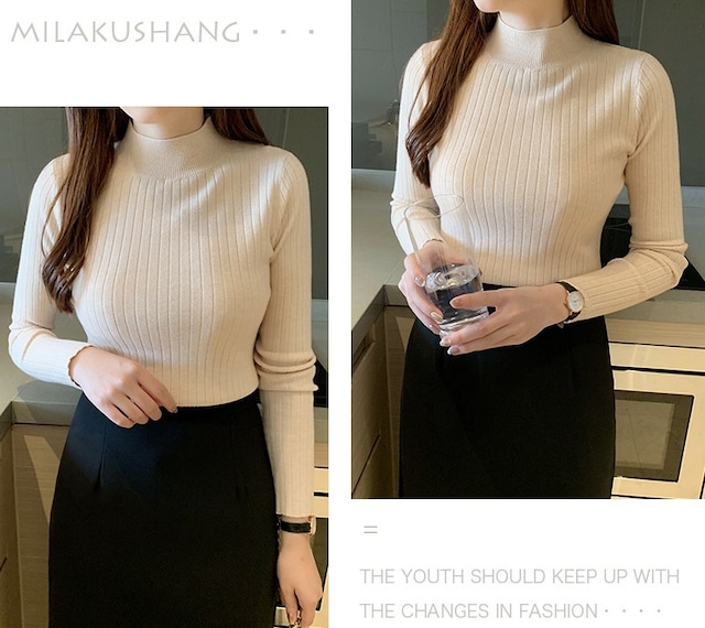 半ハイネック 太めリブ 長袖 ニットセーター レディース トップス ニット セーター プルオーバー インナー ミディアム 襟付き スタンドカラー ハーフハイネック スリム リブ リブニット かわいい 大人可愛い きれいめ シンプル カジュアル おしゃれ 無地 春 秋 冬 ママ 通勤 学生 学校 通学 デート お出かけ 旅行 公園 女子会 休日 暖かい 普段使い 着回し フリーサイズ 白 ホワイト 黒 ブラック グレー カーキ アプリコット コーヒーブラウン ローズレッド ヘイズブルー マスタードイエロー