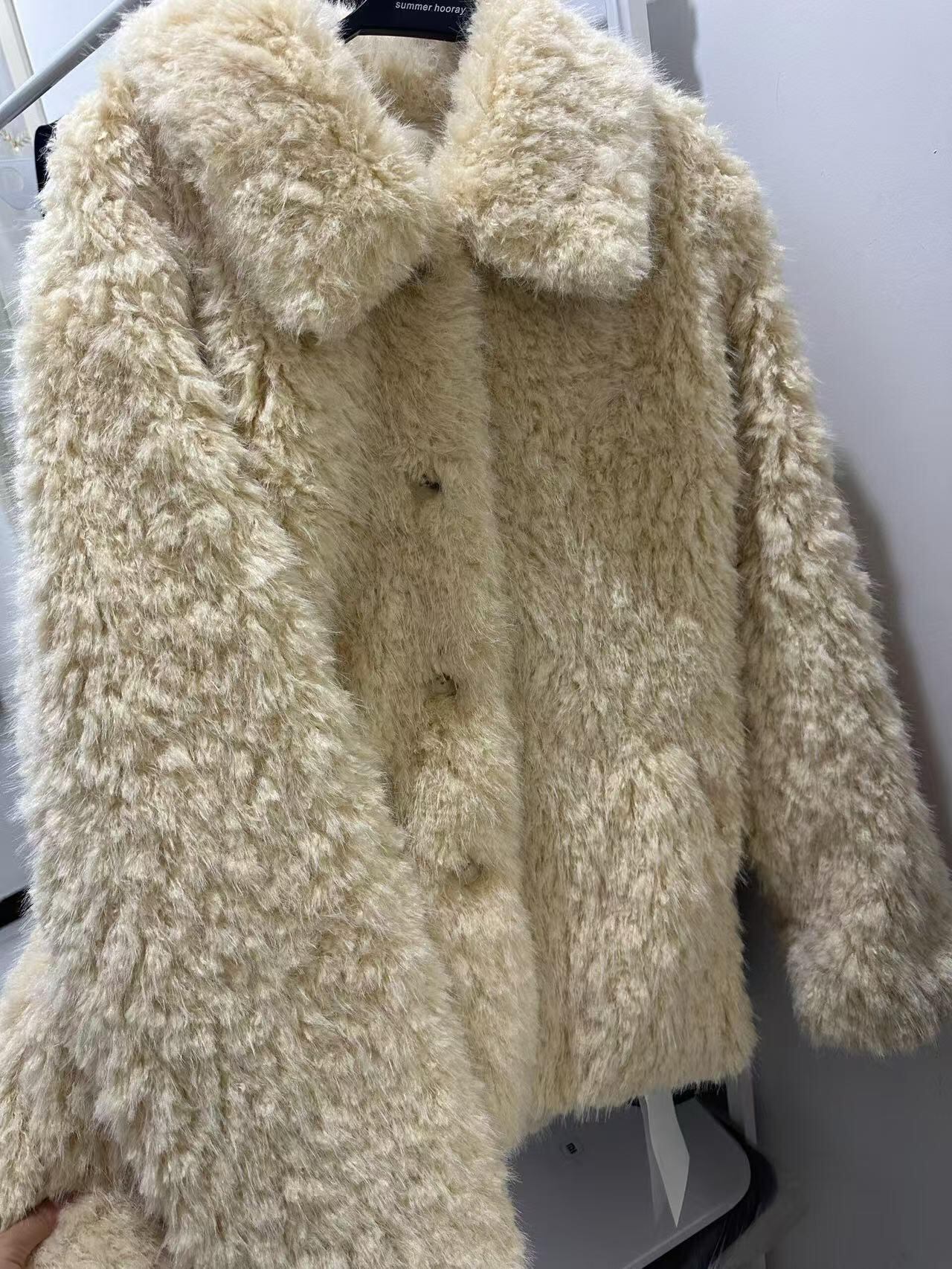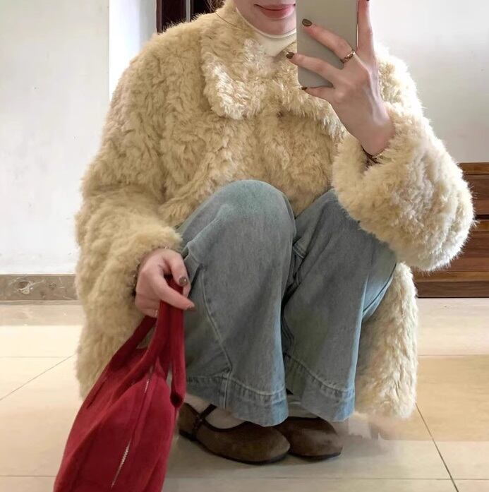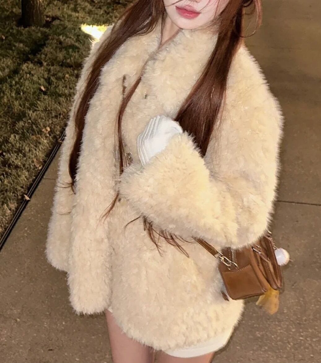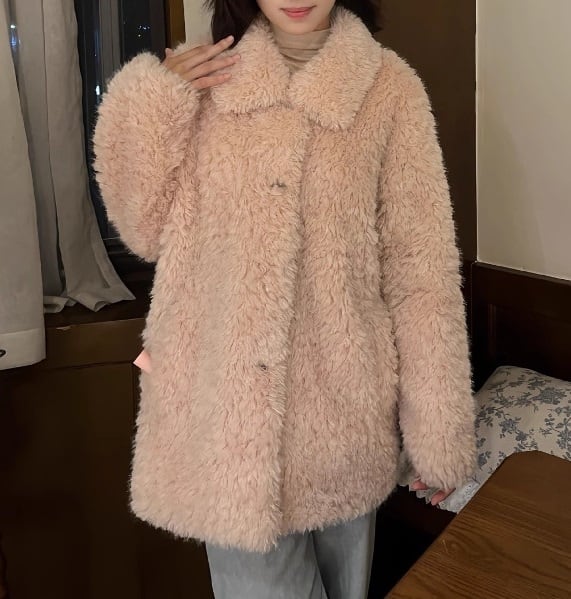 心地よい暖かさと上品さを兼ね備えた「フロントボタン 総ファー コート」のご紹介です!こちらのコートは、ふわふわのファー素材とオーバーサイズデザインが特徴で、シンプルながらも存在感のある一着となっています。襟付きで長袖のため、これからの春・秋・冬シーズンにぴったりのアイテムです。