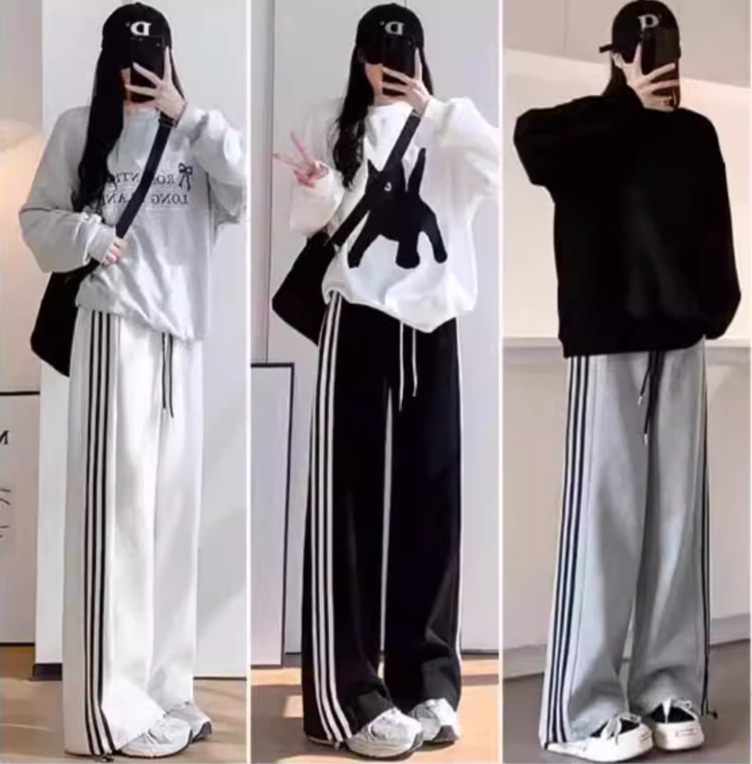 裏起毛と通常生地の2タイプ、身長別に選べる3サイズから選べる、 おしゃれで快適な「スリーライン ドロスト ワイド ストレートパンツ」のご紹介です!このパンツは、シンプルでありながら大人可愛いデザインが特徴で、ラフでありながらおしゃれな雰囲気を演出します。部屋着や普段使いに最適で、デートやお出かけ、公園でのリラックスタイムにも活躍します! 春夏秋冬問わず使えるこのスウェットパンツは、裏起毛の暖かさとウエストゴムの着心地の良さが魅力。体型カバー効果があり、ゆったりとしたシルエットで、ママや学生さんにもおすすめです!裾絞りデザインがスタイルにメリハリをプラスし、脚長効果も期待できます。 色展開は、黒、グレー、白灰色、ネイビーの4色で、どんなコーディネートにもマッチし、着回し力も抜群!さらに、S・M・L・XLの豊富なサイズ展開で、様々な体型の方にフィットする優しい設計です。休日のショッピングやカジュアルなお出かけにもぴったりな、おしゃれで使い勝手の良いアイテムです! 色展開 白灰 通常生地 9分丈 白灰 通常生地 通常丈 白灰 通常生地 長丈 グレー 通常生地 9分丈 グレー 通常生地 通常丈 グレー 通常生地 長丈 黒 通常生地 9分丈 黒 通常生地 通常丈 黒 通常生地 長丈 黒 裏起毛 通常丈 黒 裏起毛 長丈 白灰 裏起毛 通常丈 白灰 裏起毛 長丈 グレー 裏起毛 通常丈 グレー 裏起毛 長丈 ネイビー 裏起毛 通常丈 ネイビー 裏起毛 長丈 サイズ S M L XL サイズ(cm/kg) S /パンツ9分丈 94 /パンツ通常丈 98 /パンツ長丈 102 /ウエスト 60〜76 /ヒップ 98 /ふともも周り 52 /裾口 42 /体重 40〜47.5 M /パンツ9分丈 95 /パンツ通常丈 99 /パンツ長丈 103 /ウエスト 62〜80 /ヒップ 102 /ふともも周り 54 /裾口 44 /体重 48〜55 L /パンツ9分丈 96 /パンツ通常丈 100 /パンツ長丈 104 /ウエスト 65〜84 /ヒップ 106 /ふともも周り 56 /裾口 46 /体重 55.5〜62.5 XL /パンツ9分丈 97 /パンツ通常丈 101 /パンツ長丈 105 /ウエスト 68〜88 /ヒップ 110 /ふともも周り 58 /裾口 48 /体重 63〜72.5 9分丈:身長158cm以下 通常丈:身長159~165cm 長丈:身長166cm以上 《商品について》 ※当ショップは海外からのノーブランド商品になります。 海外製品のため日本商品に比べ品質が劣る場合がございます。 糸のほつれ、多少の汚れやシミ、ファスナーが固い、デザインの若干の違いなどは不良品には該当しませんのでご了承ください。 お手持ちの携帯やPCの画面設定の影響により、実物と色味が異なって見える場合がございます。 ※当ショップはお客様より注文を確認した上でメーカーに発注しておりますので返品、交換は出来かねます。ご了承下さいませ。 《発送について》 お取り寄せ商品のため、ご入金確認後、お届けまでに「10-24日程度」のお時間がかかります。 通常よりもお時間がかかってしまう場合もございます。 欠品や商品の不具合などにより、商品をお届けすることができず、ご注文をキャンセルさせていただく場合もございますのでご了承ください。 ※当ショップの商品はお取り寄せ商品につき、入金確認後メーカーへ発注させて頂きます。 ※メーカーにて在庫切れの場合は、速やかに返金させて頂きます。 《返品についての特約に関する事項》 ご注文確定後、発注後のキャンセルやサイズなどの内容変更は承っておりません。 注文時によくご確認ください 商品に欠陥がある場合を除き、基本的には返品や交換には応じません。 最後までご覧くださり、ありがとうございました。 list25284
