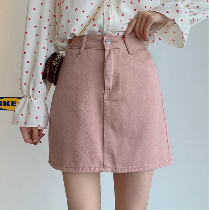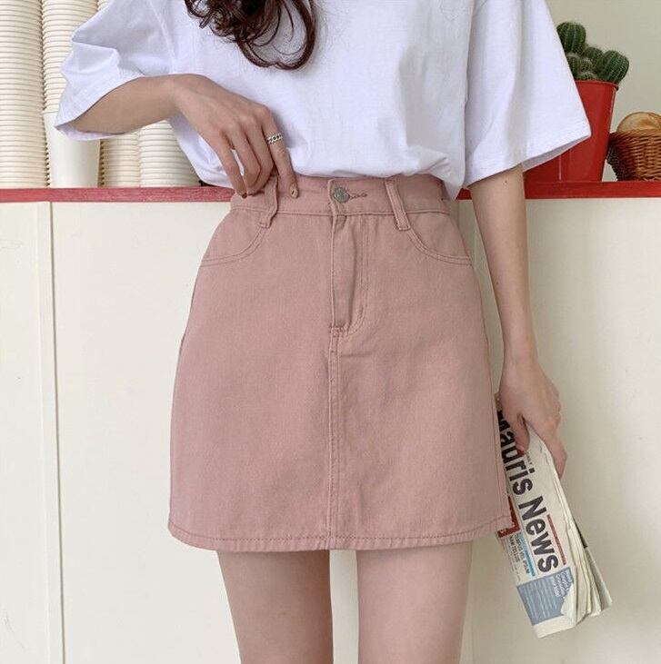 ハイウエスト Aライン デニム ミニスカート レディース スカート ボトムス デニムスカート ミニ 膝上 スリム 細身 Aライン ファスナー ポケット ハイウエスト ボタン カラーデニム かわいい 大人可愛い きれいめ シンプル カジュアル おしゃれ こなれ感 無地 春 夏 秋 冬 ママ 通勤 学生 学校 通学 デート お出かけ 旅行 公園 女子会 休日 ショッピング カフェ 美脚 脚長 普段使い 着回し 定番 S M L XL 白 ホワイト 黒 ブラック 紫 ピンク レッド アプリコット パープル