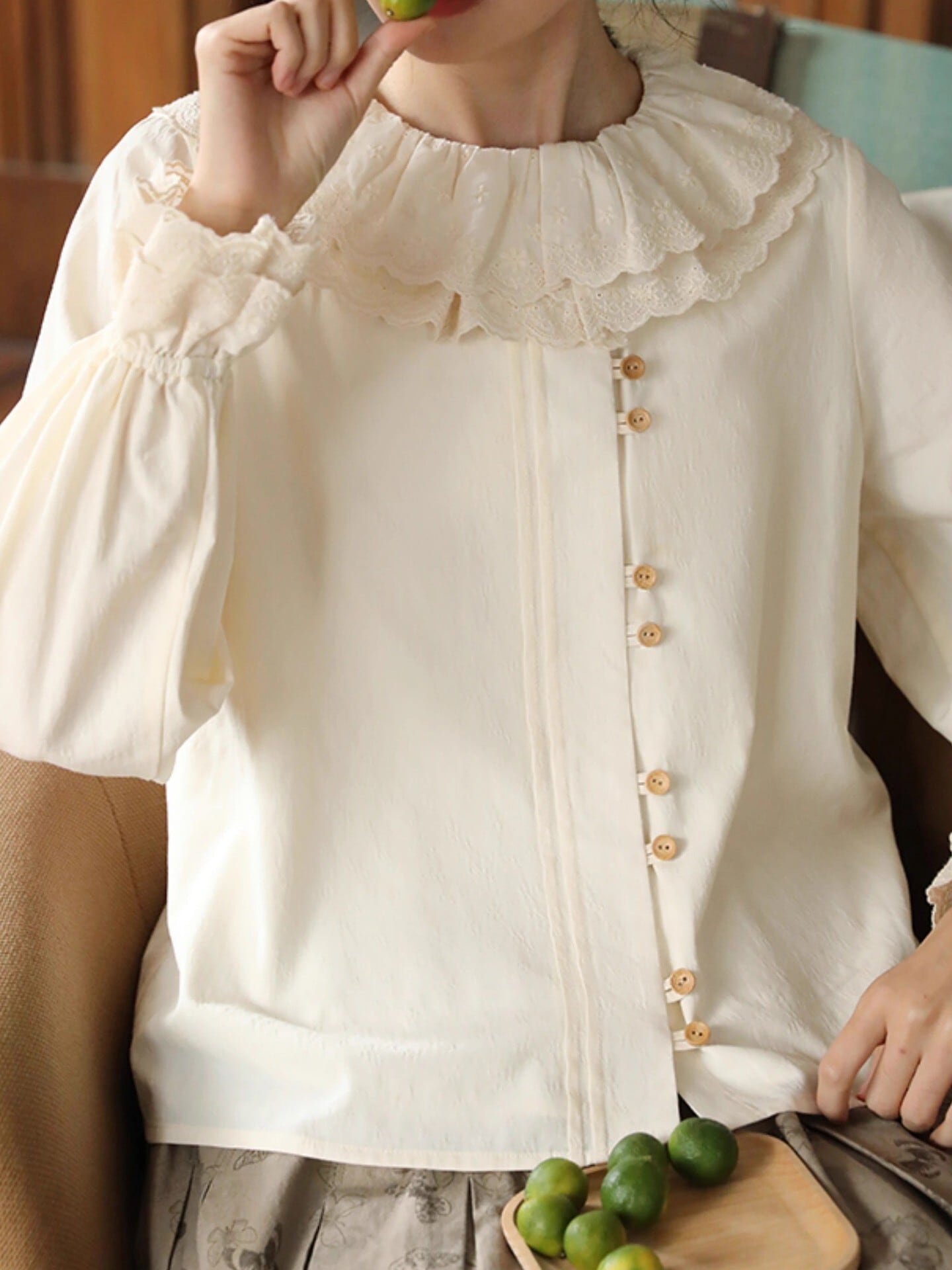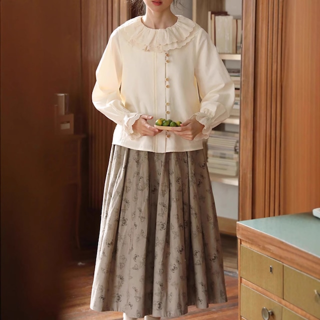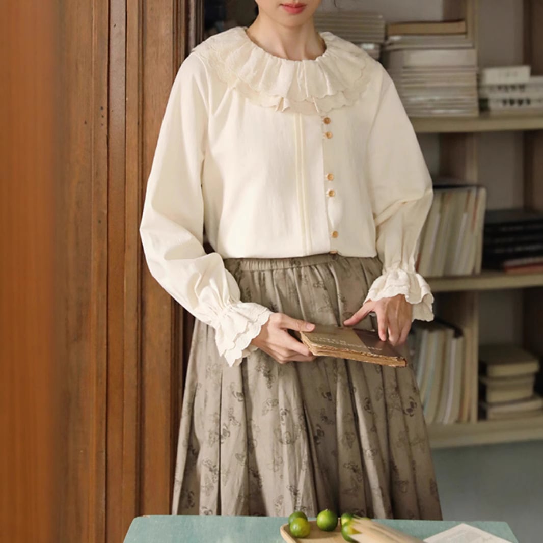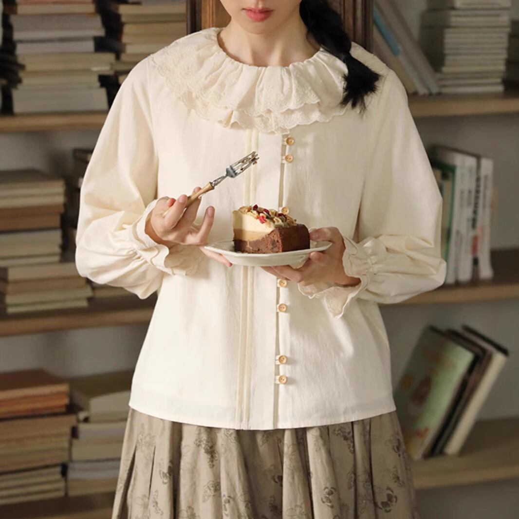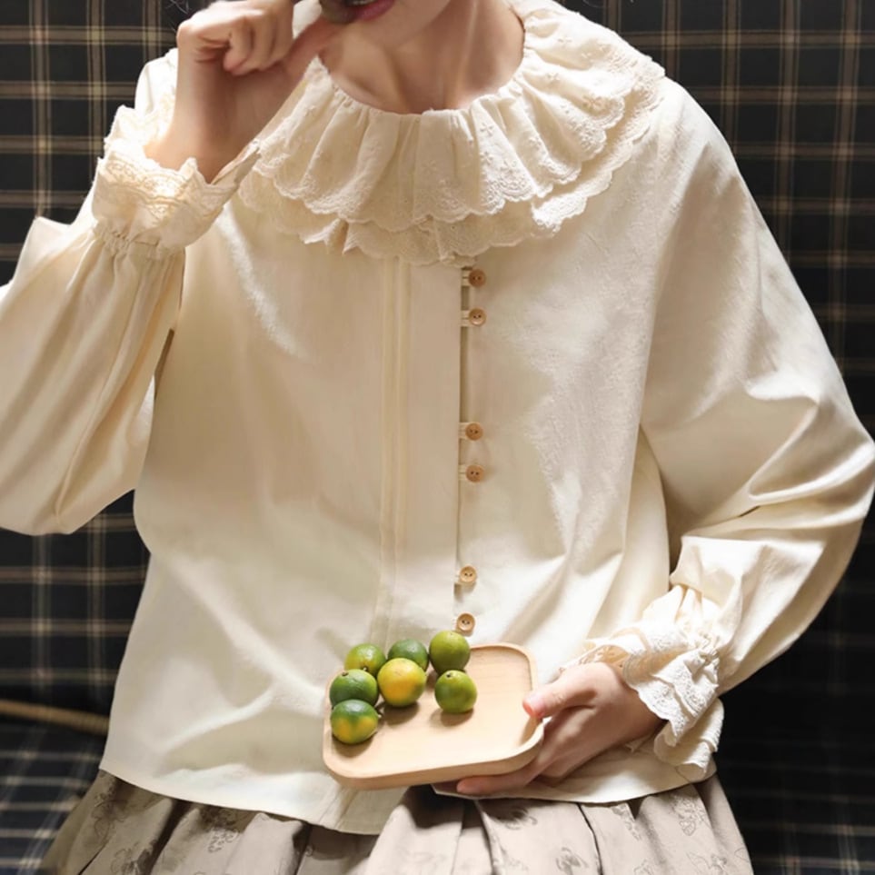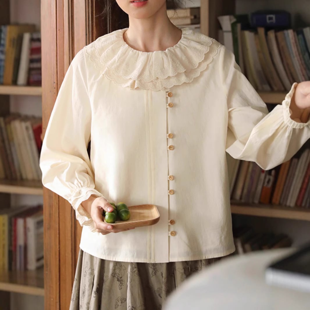 パンチングレース 襟付き 2連ボタン 長袖 ブラウス レディース トップス ミディアム 長袖 フレアスリーブ ラウンドネック 襟付き レース付き フェミニン レース 前開き ボタン かわいい 大人可愛い シンプル カジュアル 上品 おしゃれ レトロ こなれ感 ガーリー ラブリー キュート クラシカル 無地 春 秋 冬 ママ 通勤 学生 学校 通学 デート お出かけ 旅行 公園 女子会 休日 ショッピング カフェ 体型カバー 普段使い 着回し S M L ゆったり ベージュ