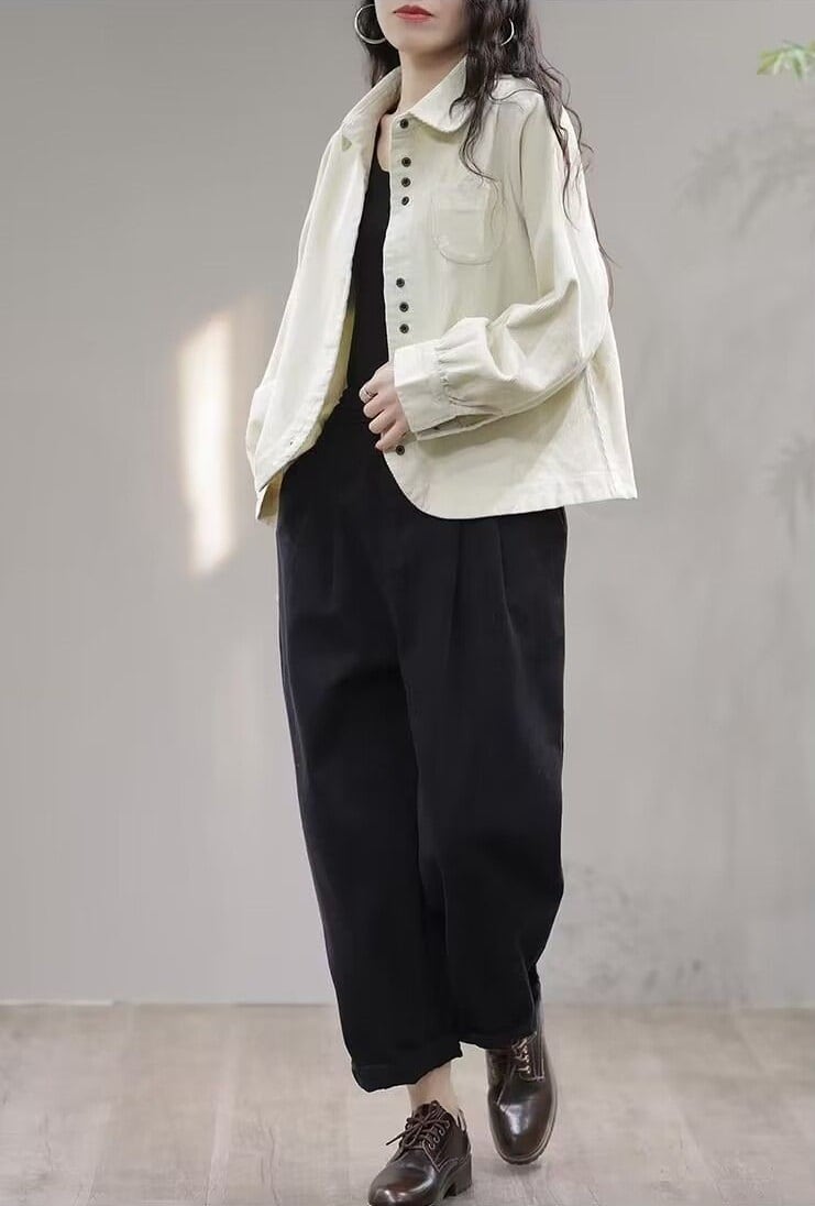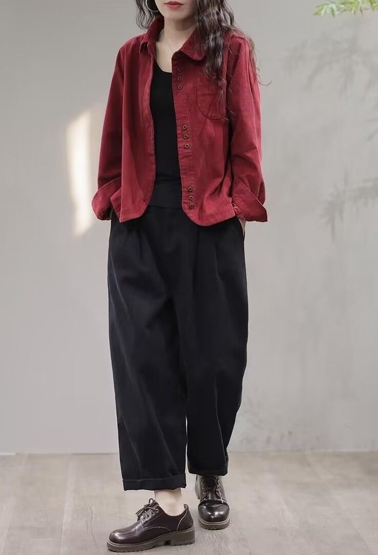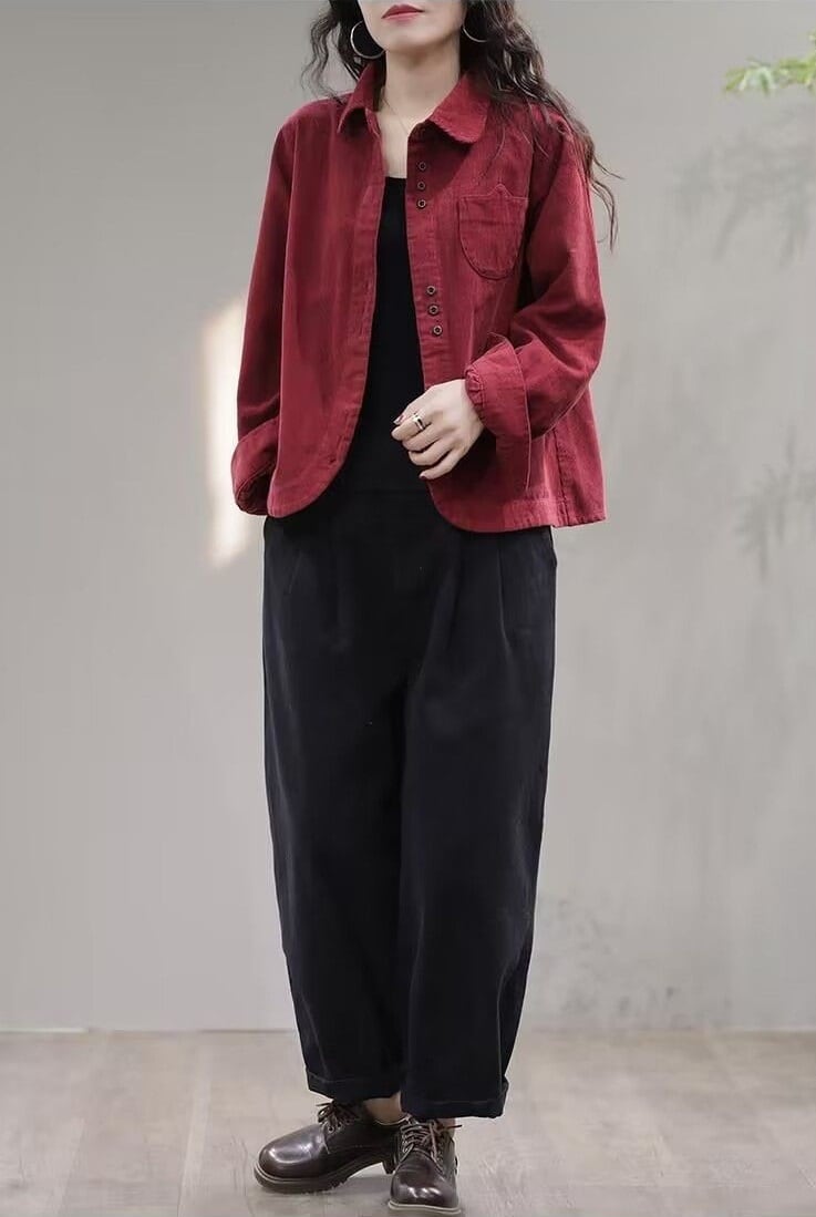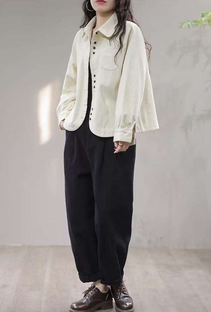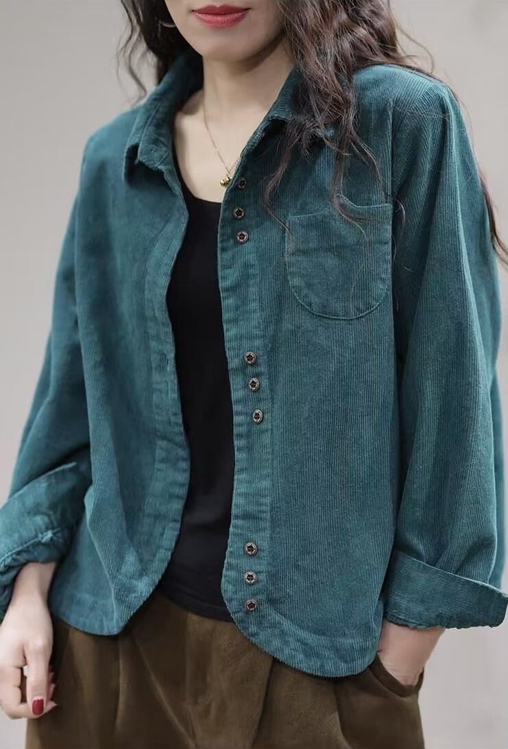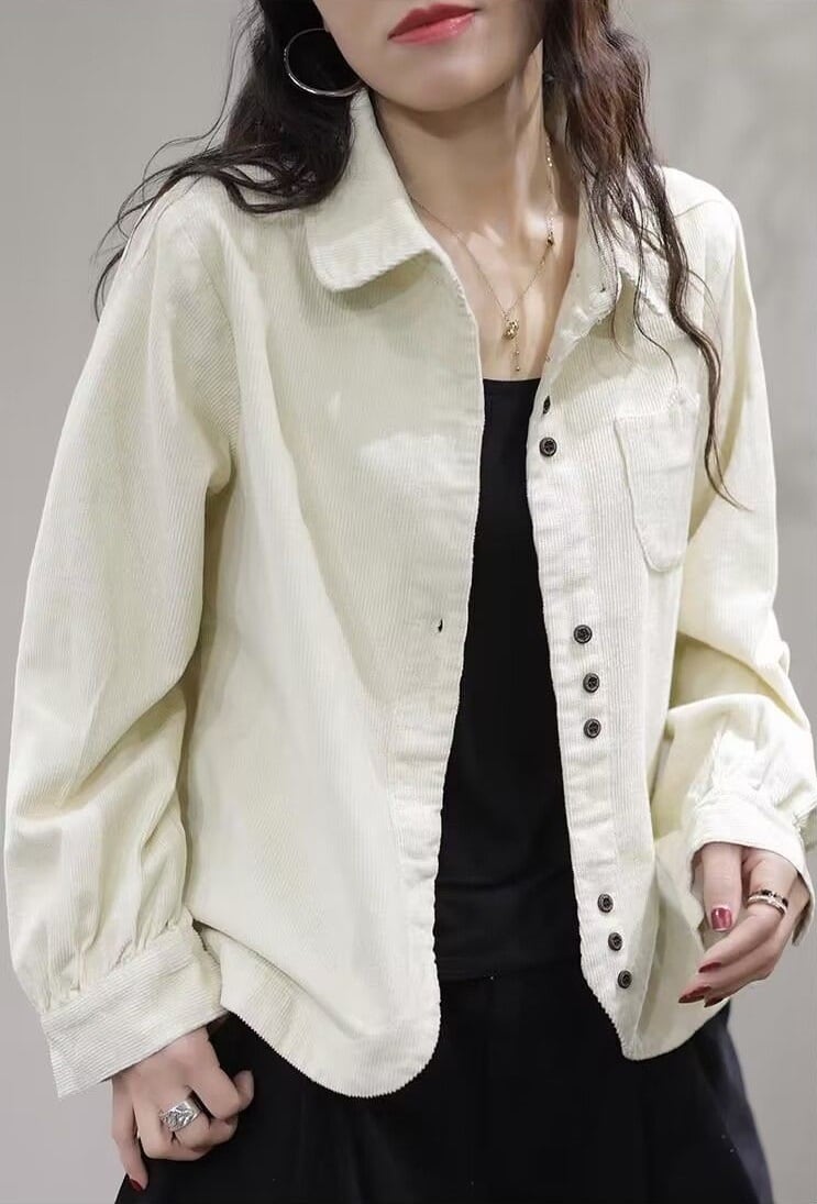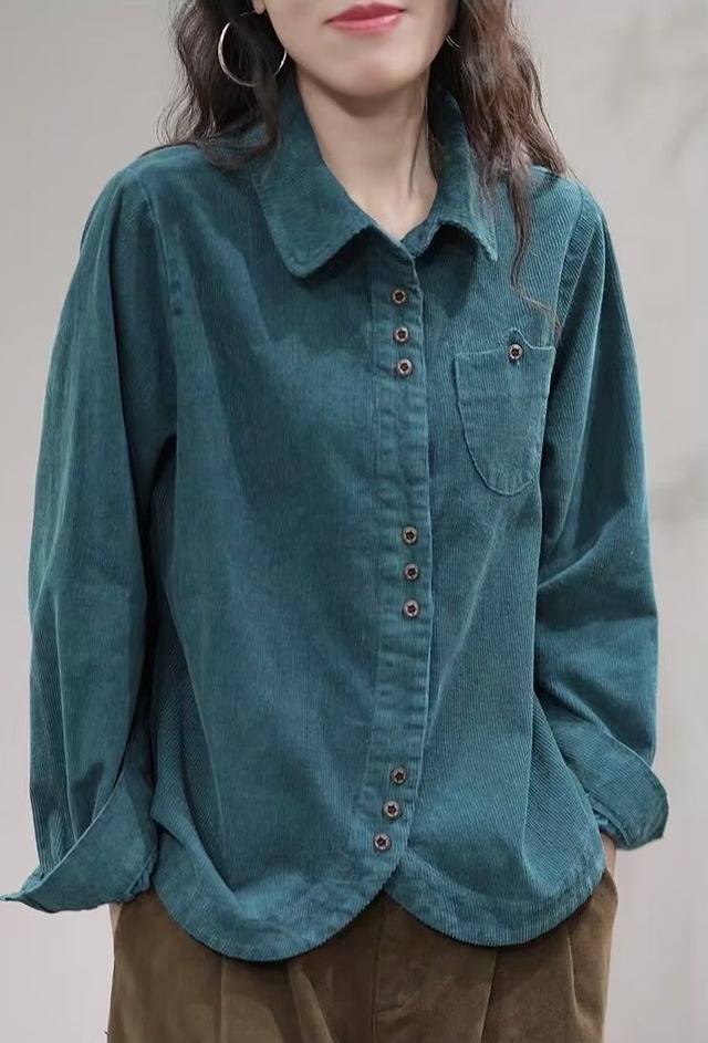 おしゃれでかわいい「コーデュロイ 3連ボタン 長袖 シャツ」のご紹介です!このシャツは、ふんわりとしたコーデュロイ素材を使用しており、肌触りがよく、リラックスした着心地を提供します。3連ボタンのデザインが、シンプルながらも洗練された印象を与え、さまざまなスタイルに合わせやすいアイテムです。