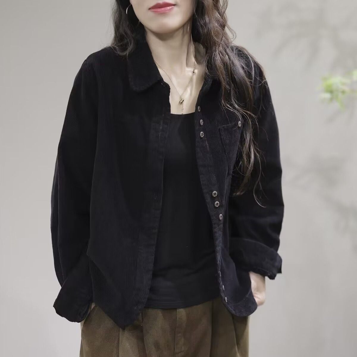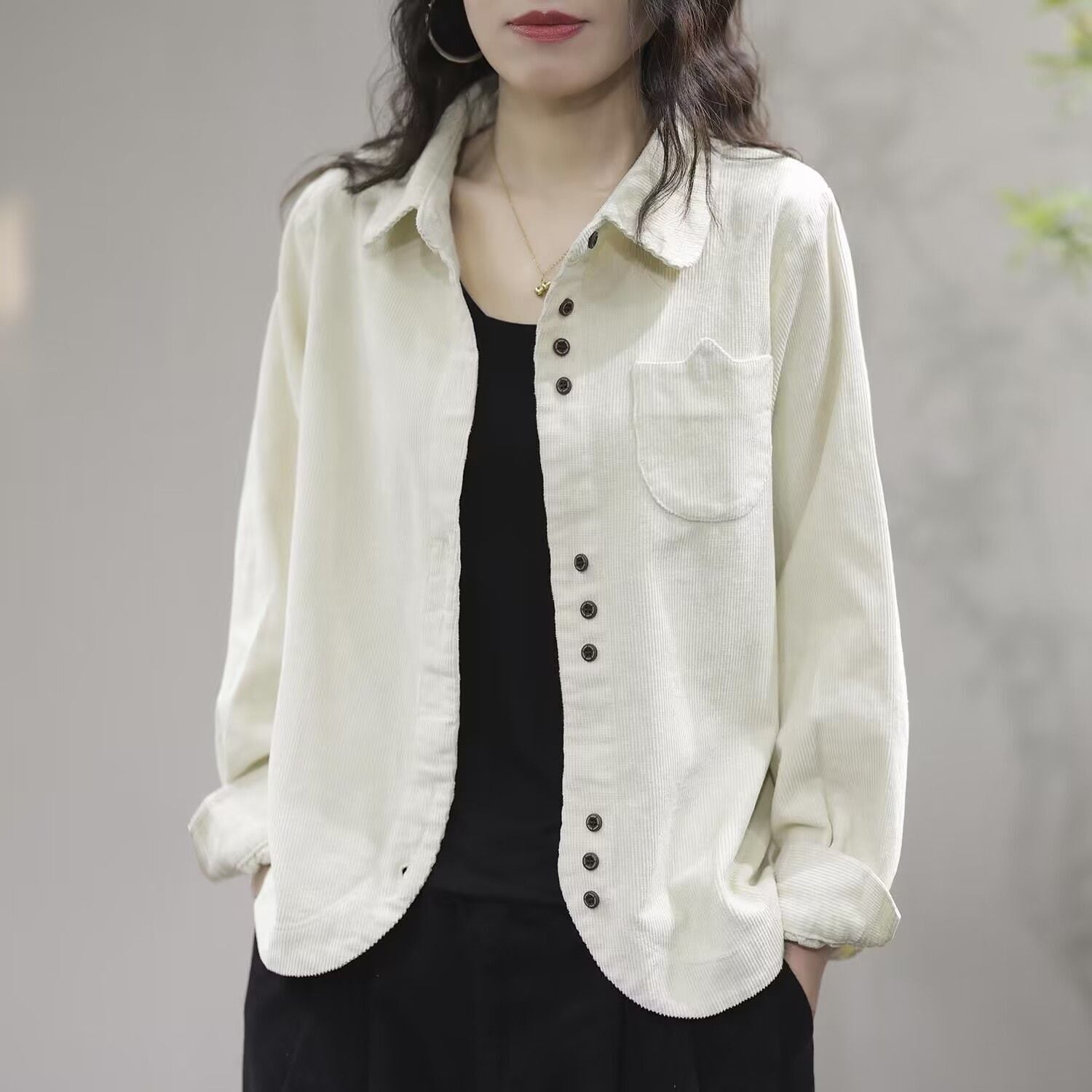 コーデュロイ 3連ボタン 長袖 シャツ レディース トップス 上着 羽織 丈長 ミディアム 長袖 襟付き ポケット 前開き ボタン ヴィンテージ かわいい 大人可愛い シンプル カジュアル おしゃれ かっこいい レトロ こなれ感 メンズライク マニッシュ クール 無地 春 秋 冬 ママ 通勤 学生 学校 通学 デート お出かけ 旅行 公園 女子会 休日 重ね着 体型カバー 普段使い 着回し S M L XL 2XL 3XL 大きいサイズ ゆったり 黒 ブラック オフホワイト ブルー ワインレッド