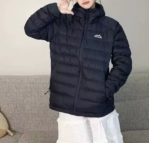 おしゃれでかわいい「フード付き スリム ジップアップ ダウンジャケット」のご紹介です!このダウンジャケットは、軽量でありながら優れた保温性を誇り、肌寒い季節でも暖かく快適に過ごせます。細身のシルエットがスタイリッシュで、シンプルなデザインがあらゆるコーディネートに合わせやすいアイテムです。