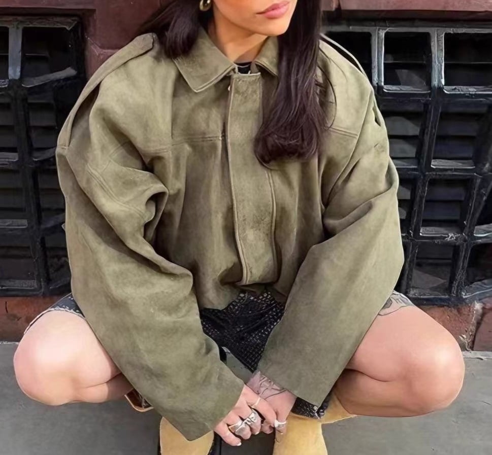 おしゃれでかっこいい、単品売り スエード セットアップ。「 ジャケット ショートパンツ ミニスカート」のご紹介です!このセットアップは、柔らかなスエード素材を使用し、シンプルながらも存在感のあるデザインが特徴です。緑は統一感のあるセットアップコーデが時短で完成し、ジャケットとショートパンツ、ミニスカートのそれぞれ3つのスタイルが楽しめるため、多彩なコーディネートが可能です。