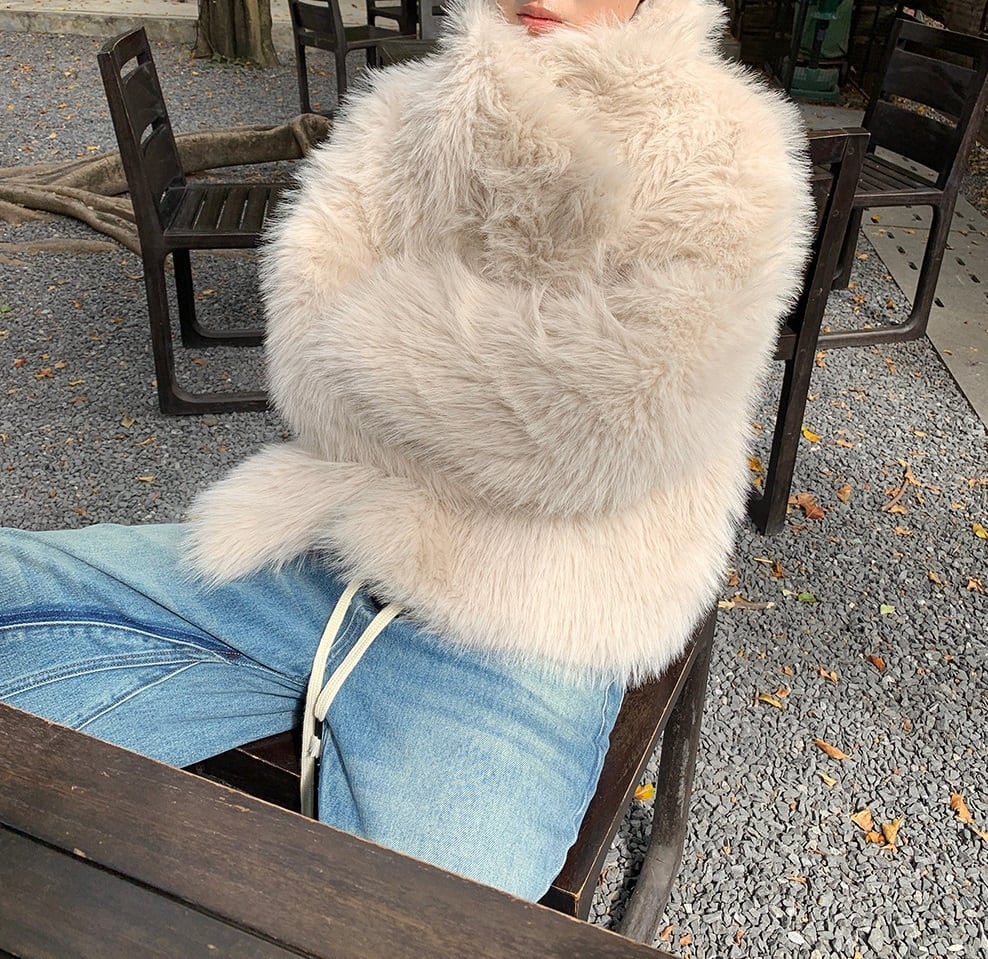 特徴的なハイネックのスタンドカラーは、首元をしっかりと防寒し、ちょっとしたお出かけにもおしゃれに決まります。もこもこのファーが、見た目にも暖かさをプラス!シンプルながらも存在感があり、普段使いから特別なシーンまで、幅広いコーディネートに活躍します。