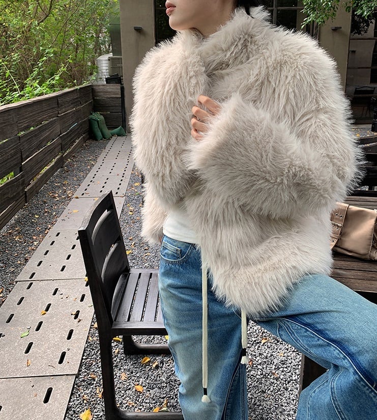 おしゃれで使い勝手抜群の「スタンドカラー 総ファー ショートコート ジャケット 」のご紹介です!このショートコートは、ふわふわのファー素材を使用し、暖かさと軽やかさを兼ね備えたアイテムです。大人可愛い雰囲気を演出し、通勤や通学、デート、旅行にぴったりな万能アウターです。