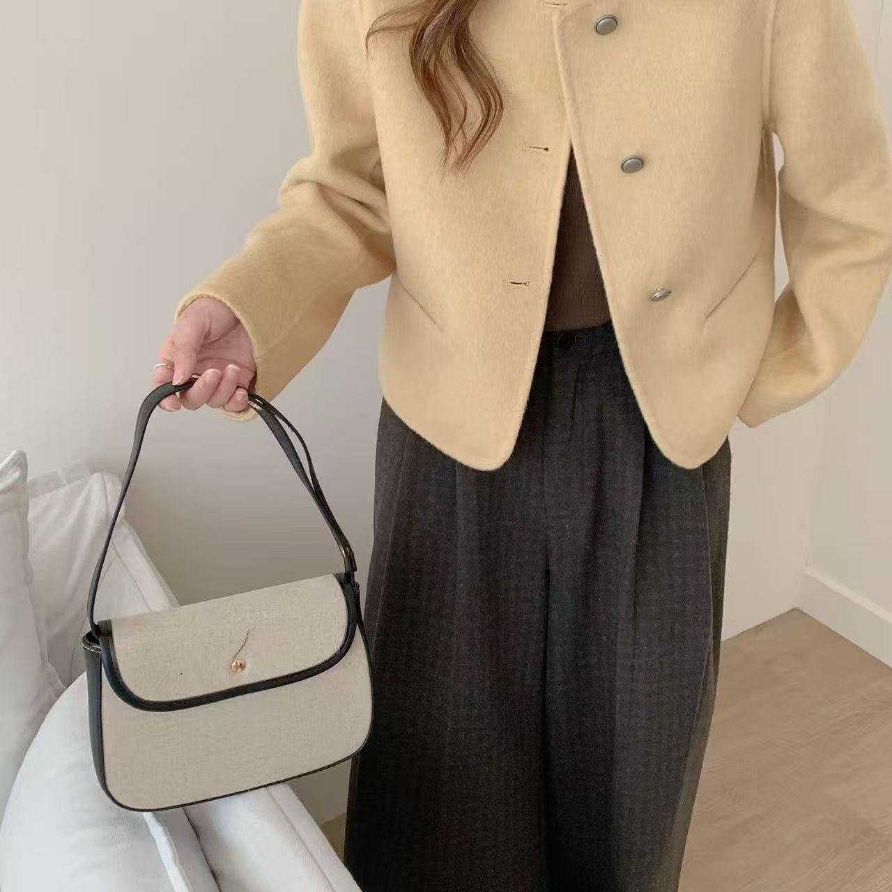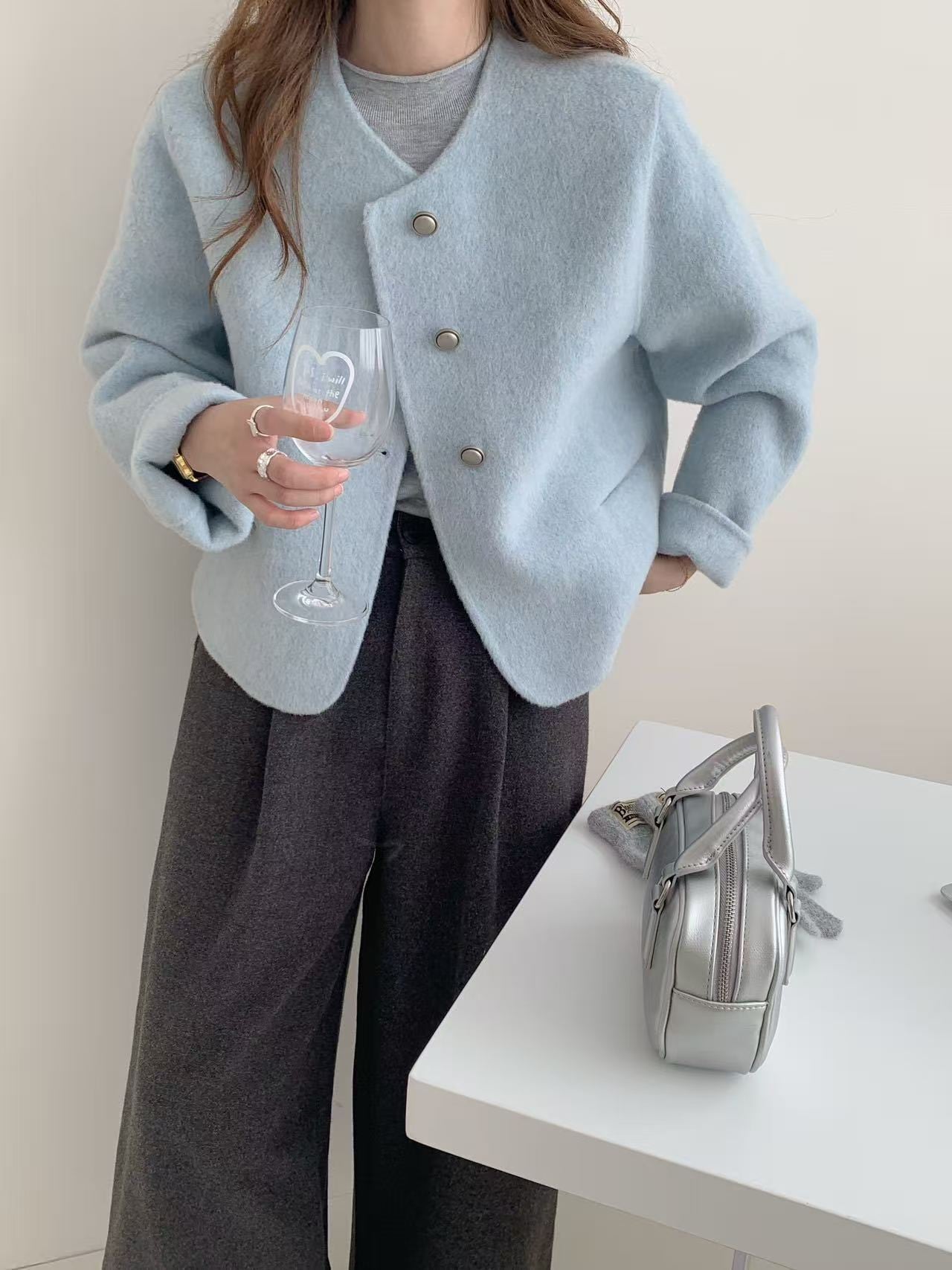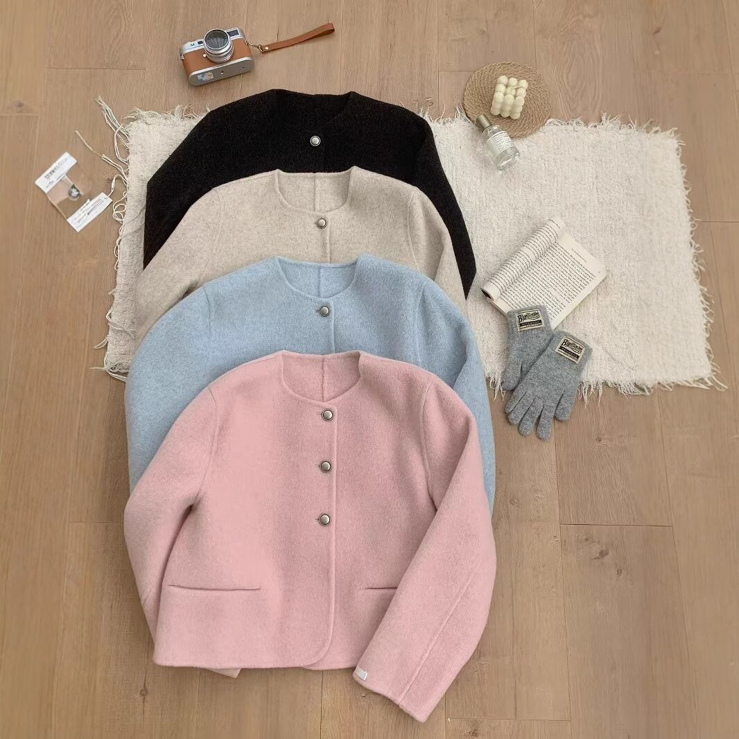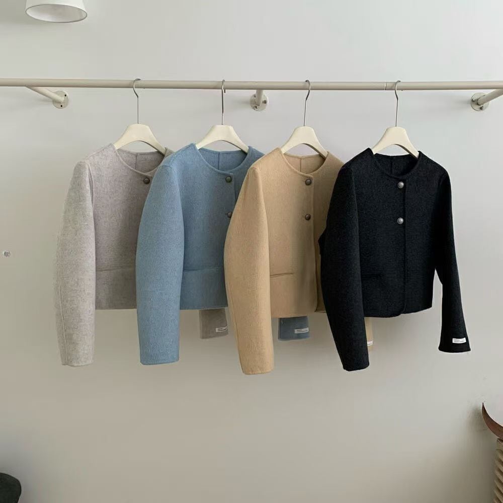 おしゃれで快適な「淡めカラー フロントボタン ノーカラー 長袖 ジャケット」のご紹介です!このジャケットは、大人可愛いシンプルなデザインが特徴で、春、秋、冬の季節を通じて様々なシーンで活躍します。通勤や学校、デート、お出かけ、旅行など、安心して着用できるアイテムです。