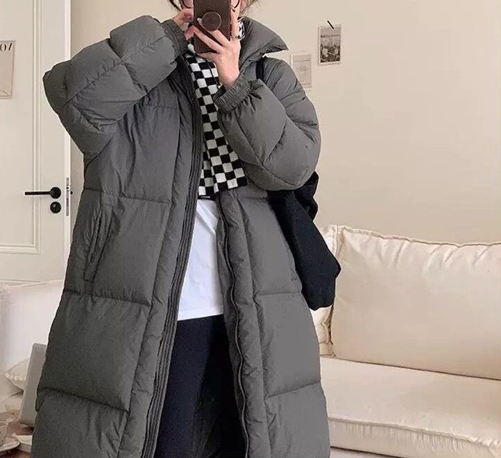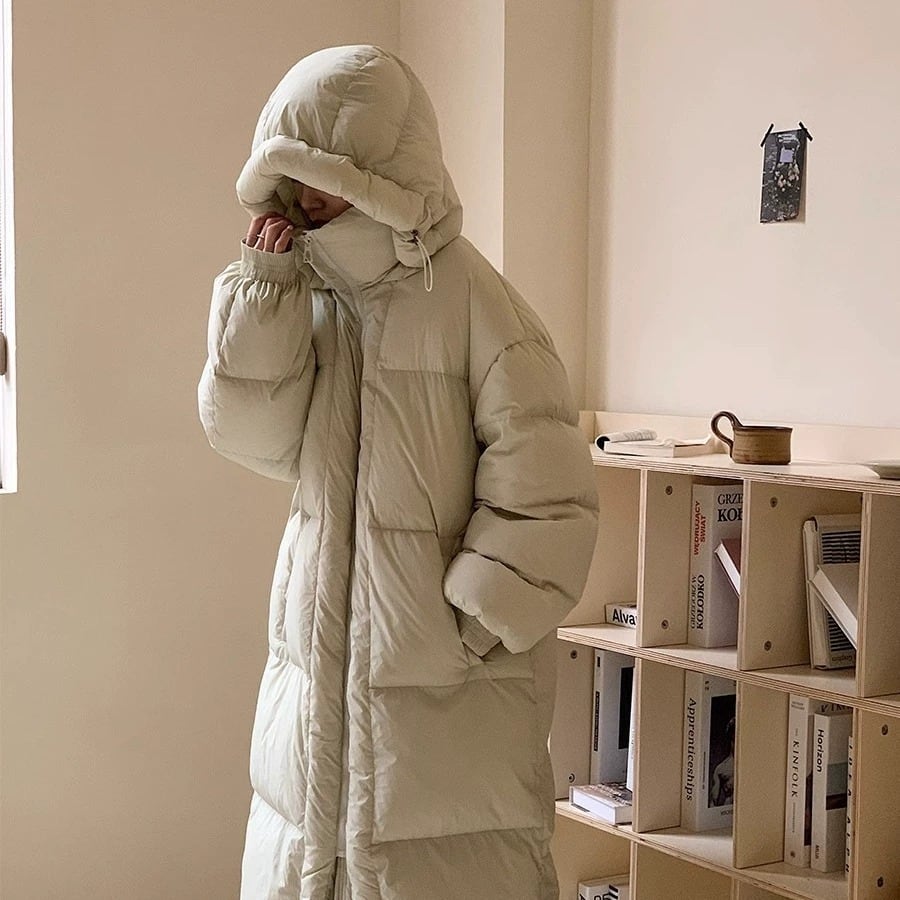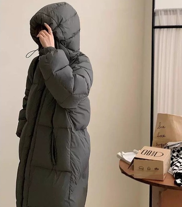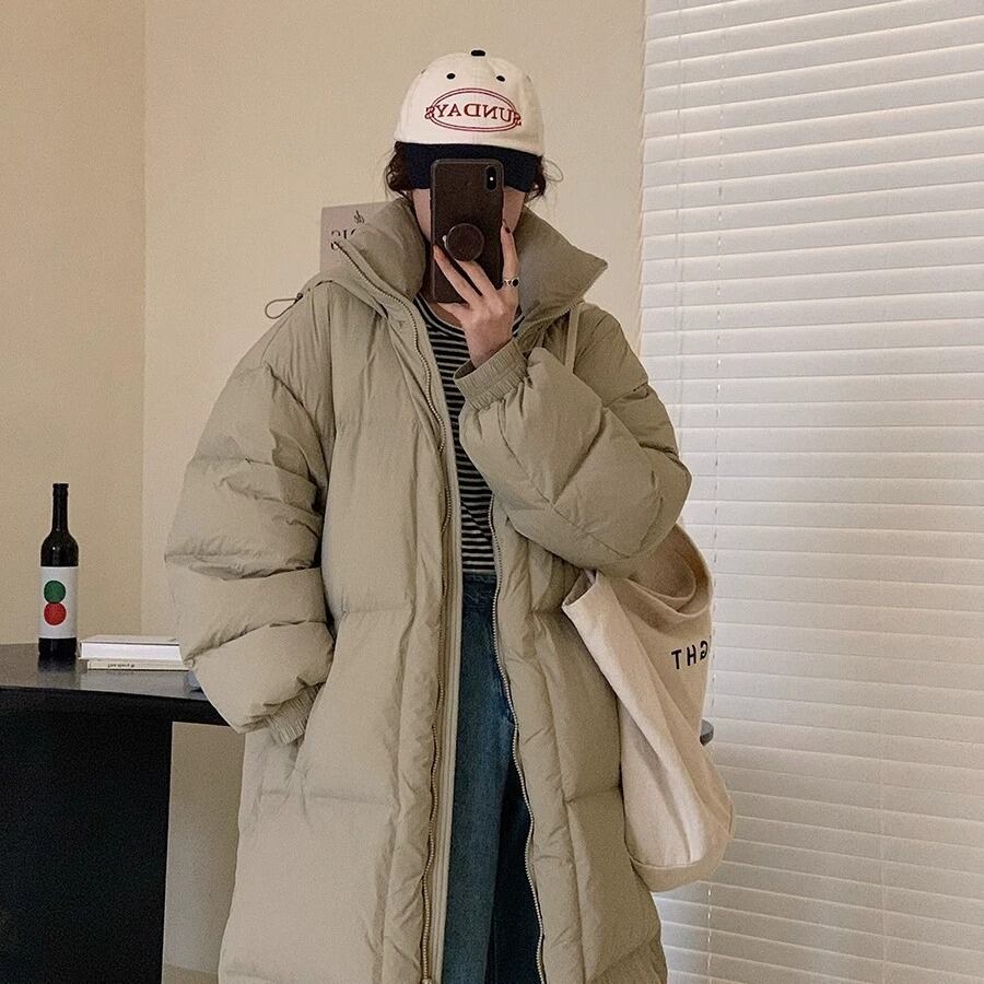立ち襟 フード付き ロング丈 ダウンジャケット コート レディース ジャケット アウター 上着 羽織 膝下 ロング 丈長 長袖 襟付き オーバーサイズ ファスナー ポケット 前開き ジップアップ ダウン かわいい 大人可愛い シンプル カジュアル おしゃれ こなれ感 ボーイッシュ 存在感 無地 春 秋 冬 ママ 通勤 学生 学校 通学 デート お出かけ 旅行 公園 女子会 休日 重ね着 暖かい 防寒 体型カバー 普段使い 着回し レイヤード S M ゆったり 黒 ブラック グレー オフホワイト カーキ