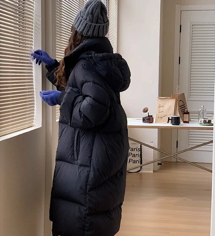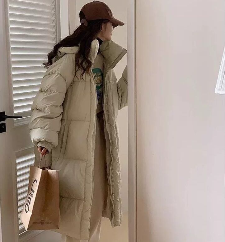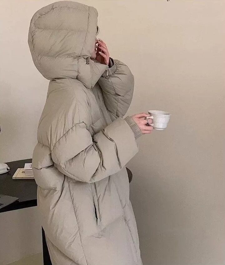 おしゃれで快適な「立ち襟 フード付き ロング丈 ダウンジャケット コート」のご紹介です!このジャケットは、大人可愛いシンプルなデザインが特徴で、春、秋、冬の季節を通じて様々なシーンで活躍します。通勤や学校、デート、お出かけ、旅行など、安心して着用できるアイテムです。