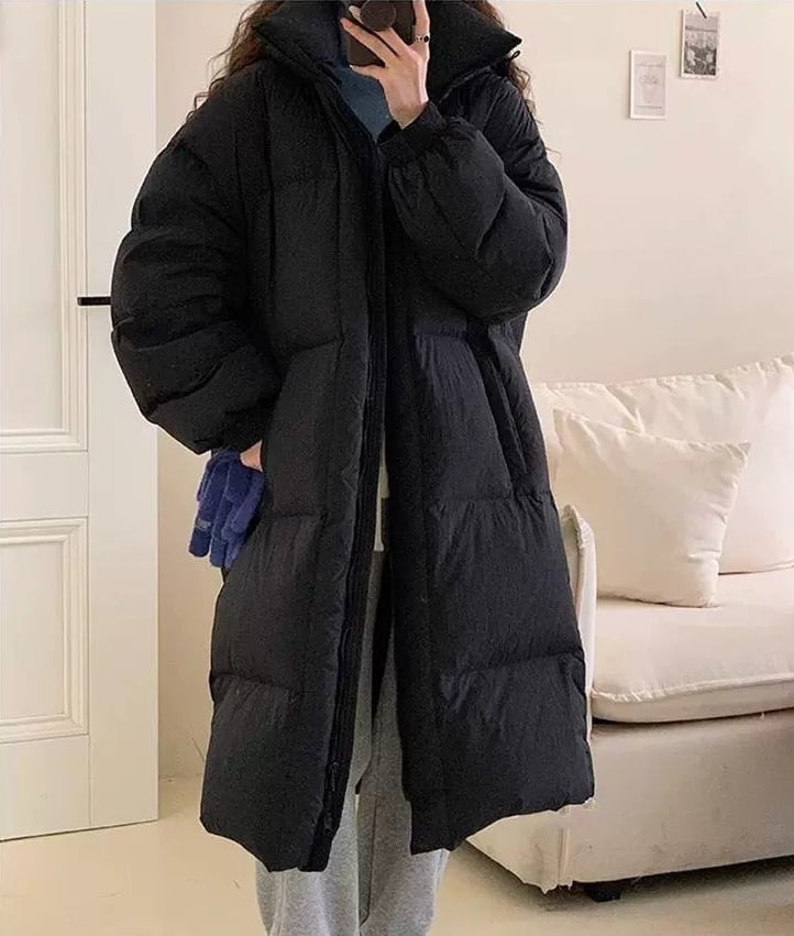 立ち襟とフード付きのデザインが、カジュアルでおしゃれな印象を与えつつ、ロング丈でしっかりと体型カバーもしてくれます。長袖仕様なので、肌寒い日でも心地よく温かさを提供します。オーバーサイズのシルエットは、ゆったりとした着心地を実現し、普段使いや重ね着にもぴったりです。また、無地のシンプルなデザインは、様々なコーディネートに合わせやすく、おしゃれなこなれ感を演出します。