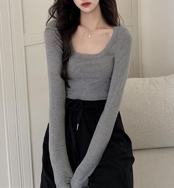 深めのスクエアネックデザインがデコルテ魅せし、セクシーさとおしゃれ感を引き立てつつ、スリムなシルエットが体型を美しく見せます。長袖仕様で温かさも得られ、シンプルな無地カラーは様々なコーディネートに合わせやすく、着回しや重ね着にも最適です。ベーシックカラーのホワイト、ブラック、グレーは、どんなスタイルにもマッチします。