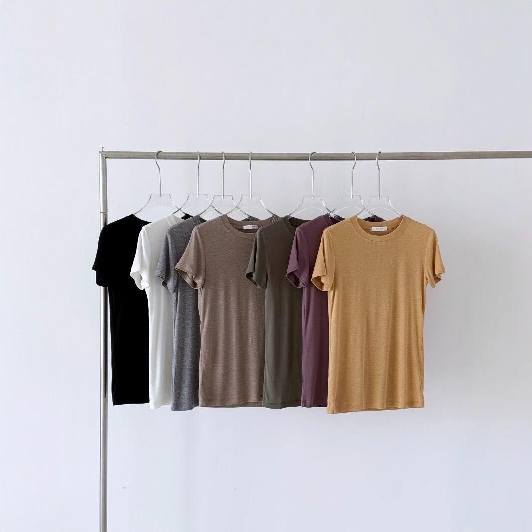 シンプル ラウンドネック 半袖 Tシャツ レディース トップス カットソー プルオーバー インナー ミディアム 半袖 ラウンドネック 襟なし かわいい 大人可愛い きれいめ シンプル カジュアル おしゃれ こなれ感 ラフ ベーシック ナチュラル 無地 春 夏 秋 冬 ママ 通勤 学生 学校 通学 デート お出かけ リゾート 旅行 公園 女子会 休日 ショッピング カフェ 重ね着 体型カバー 普段使い 着回し レイヤード S M L 白 ホワイト 黒 ブラック グレー ジンジャーイエロー ミルクコーヒー