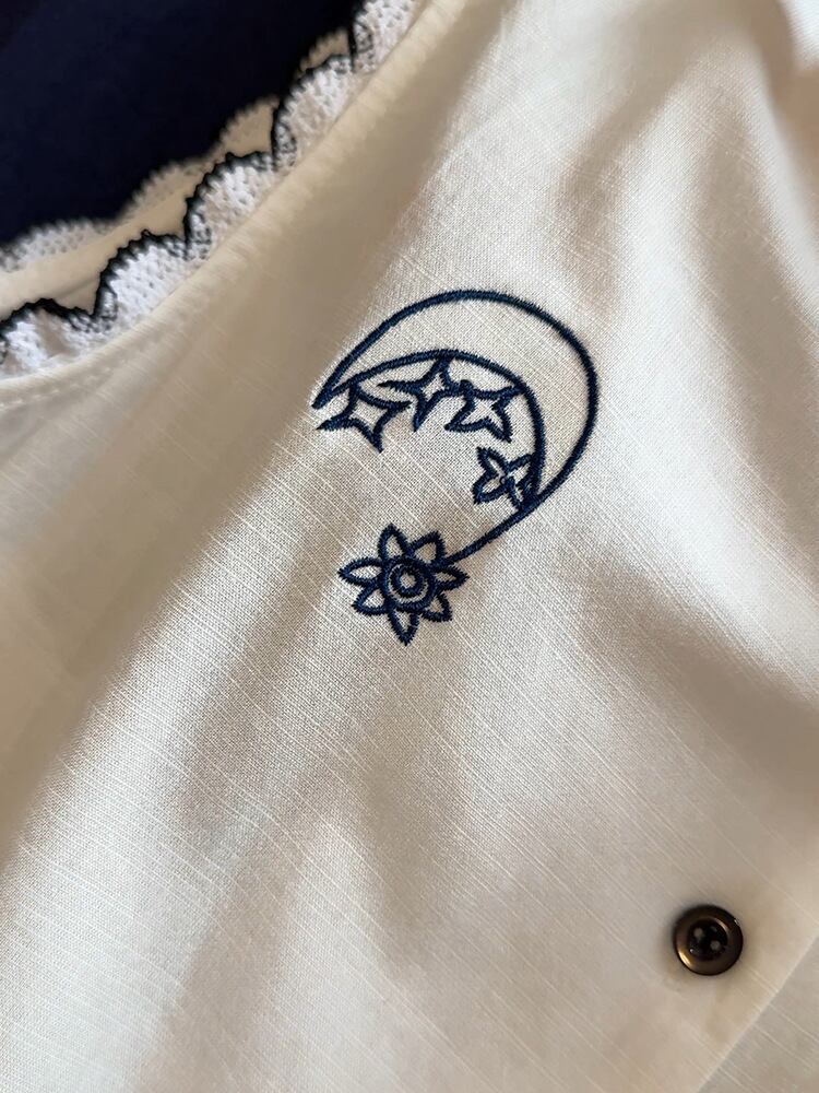 このシャツは、細やかな刺繍柄が特徴で、上品なラウンドネックとスタンドカラーが大人可愛い印象を与えます。春夏秋を通して、通勤やデート、休日のお出かけ、旅行、女子会など、さまざまなシーンで活躍するアイテムです。