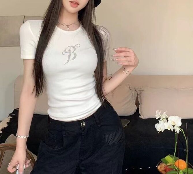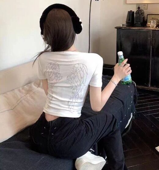 このTシャツは、華やかな羽モチーフとビジュー装飾が特徴で、シンプルながらも個性的な印象を与えます。半袖デザインとショート丈は、春夏秋のお出かけやデート、女子会に最適!特に、ママや学生にもピッタリなアイテムです!
