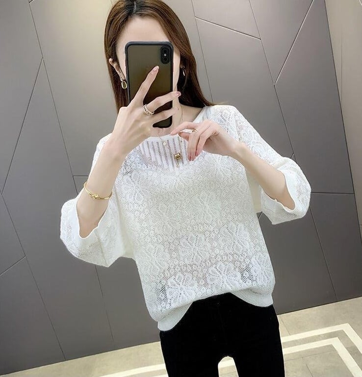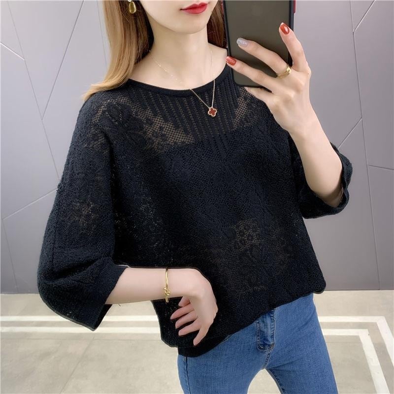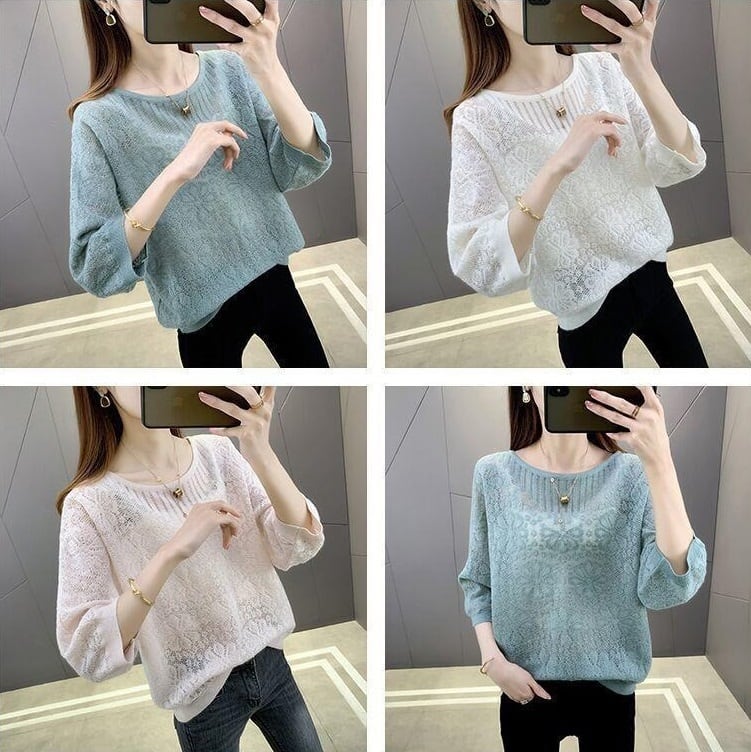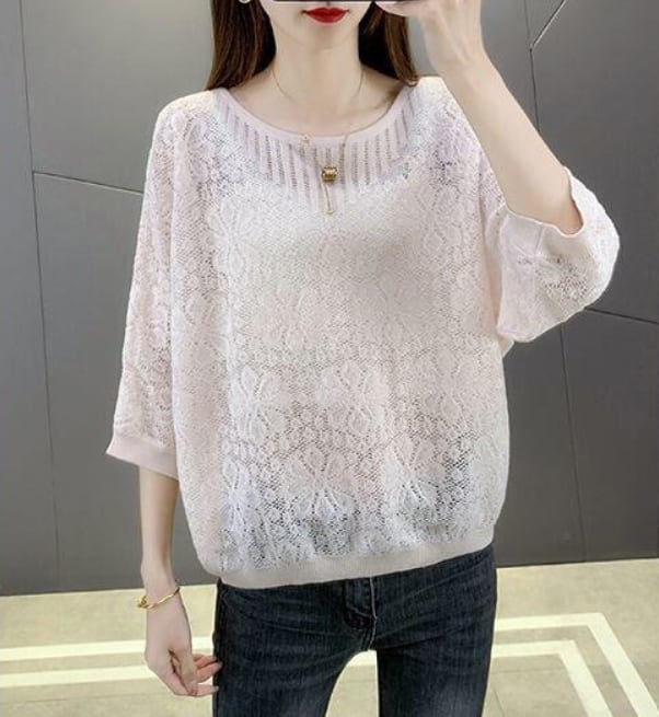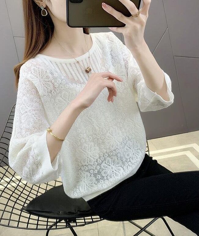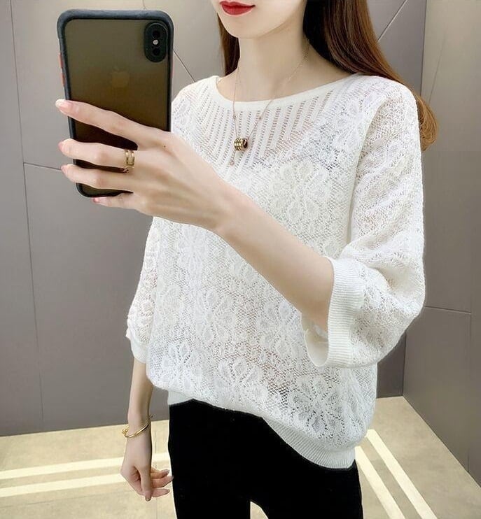 七分袖 花柄 透かし編み ニットセーター レディース トップス ニット セーター プルオーバー 丈長 ミディアム 7分袖 ドルマンスリーブ ラウンドネック 襟なし レース クロシェ 透け感 シースルー かわいい 大人可愛い きれいめ シンプル カジュアル 上品 おしゃれ 花柄 フラワー 春 夏 秋 ママ 通勤 学生 学校 通学 デート お出かけ 旅行 公園 女子会 休日 ショッピング 重ね着 体型カバー 普段使い 着回し ゆったり フリーサイズ 白 ホワイト 黒 ブラック ピンク 水色 ライトブルー