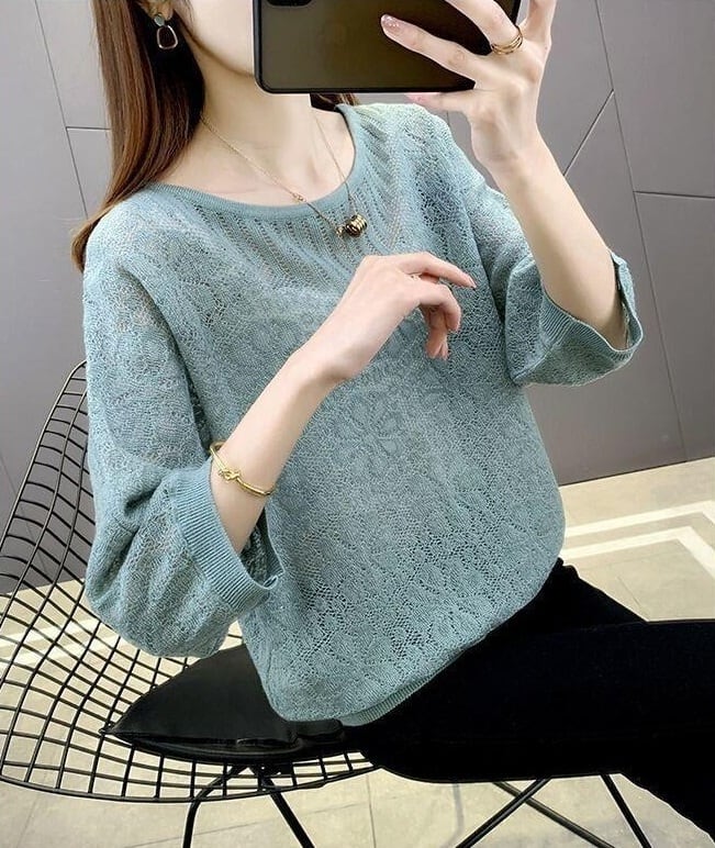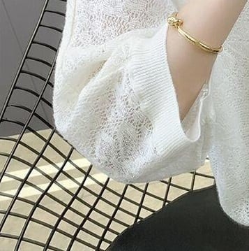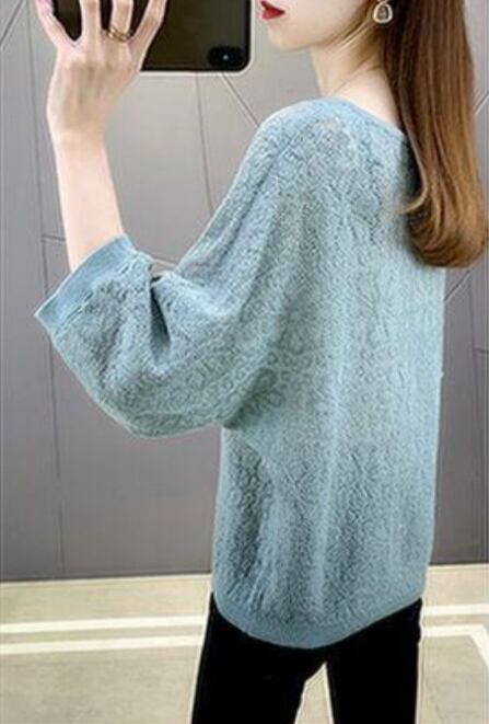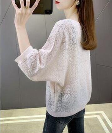 おしゃれで可愛らしさ満点の「七分袖 花柄 透かし編み ニットセーター」のご紹介です!