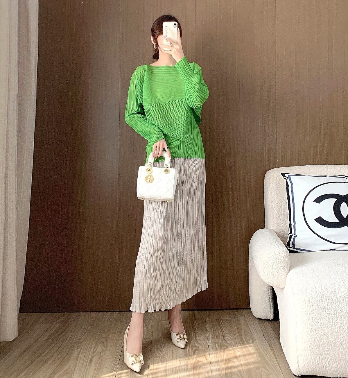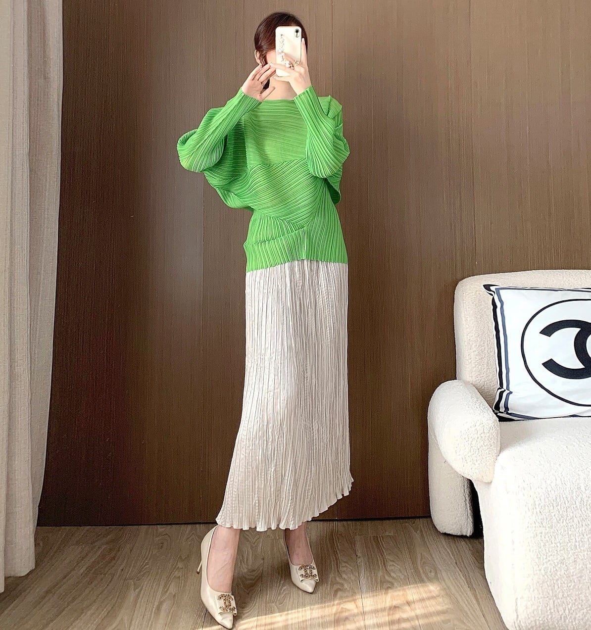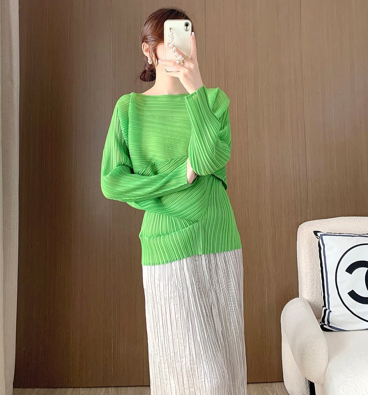 このトップスは、アシンメトリーなデザインとフェミニンなプリーツが魅力。ゆとりのあるドルマンスリーブがアクセントになり、女性らしさを引き立てます。また、ラウンドネックとボートネックの2Way仕様が、さまざまなシーンでの着用を可能にします。自宅での普段使いはもちろん、授業参観や会議、デートや休日のお出かけまでおしゃれに決まる一着です!