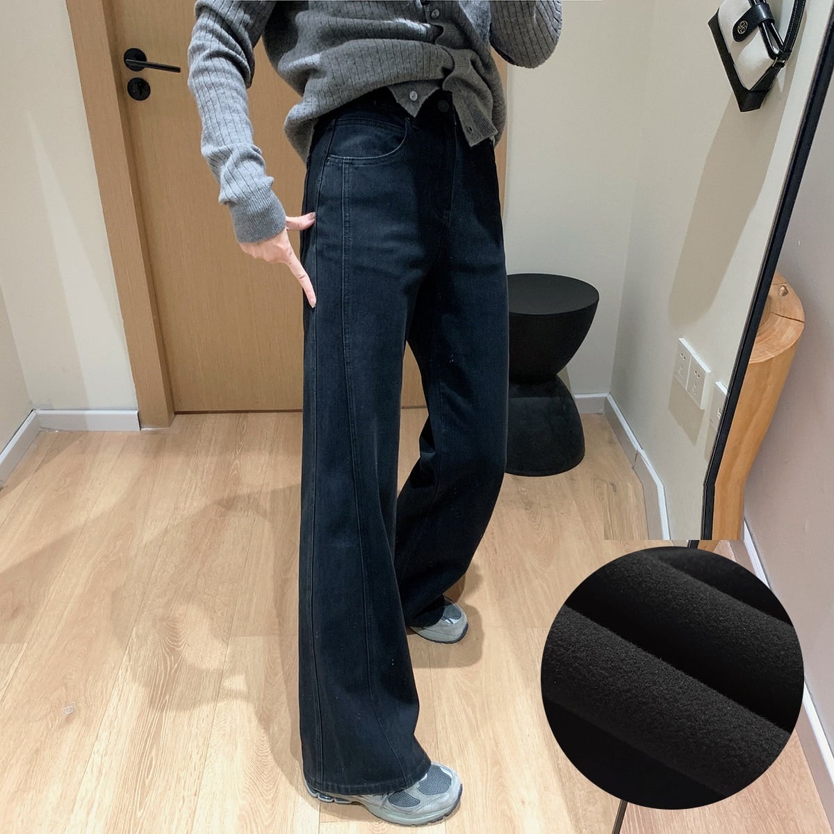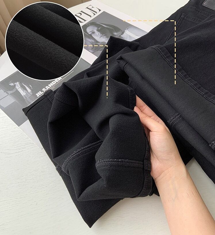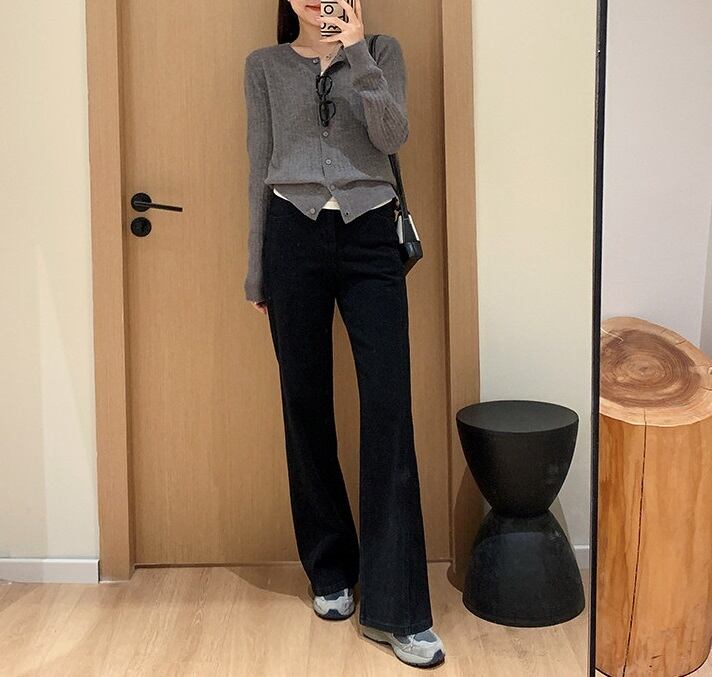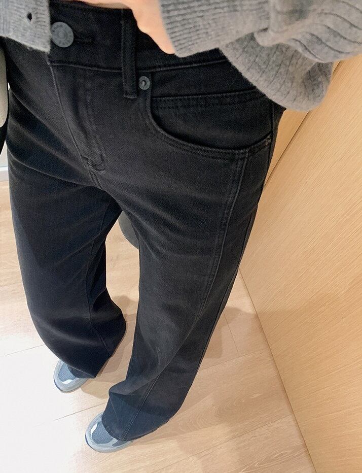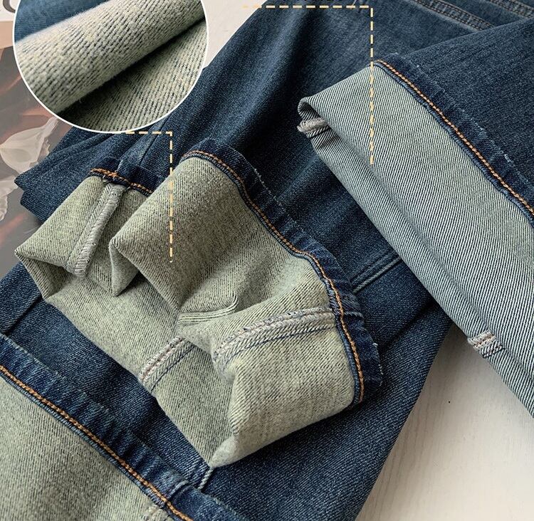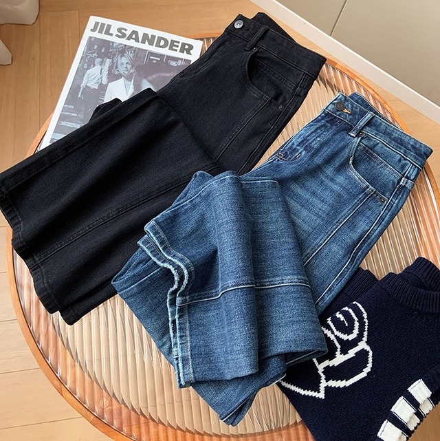 色展開は、シンプルなブルーデニム、ブラックデニム、さらに薄手の通常生地と裏起毛の2タイプをご用意。どんなトップスとも合わせやすく、こなれ感のあるスタイルを楽しめます。また、実用的なポケット付きで、機能性にも優れています。