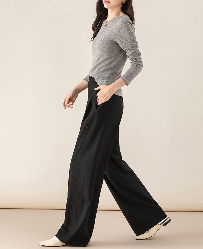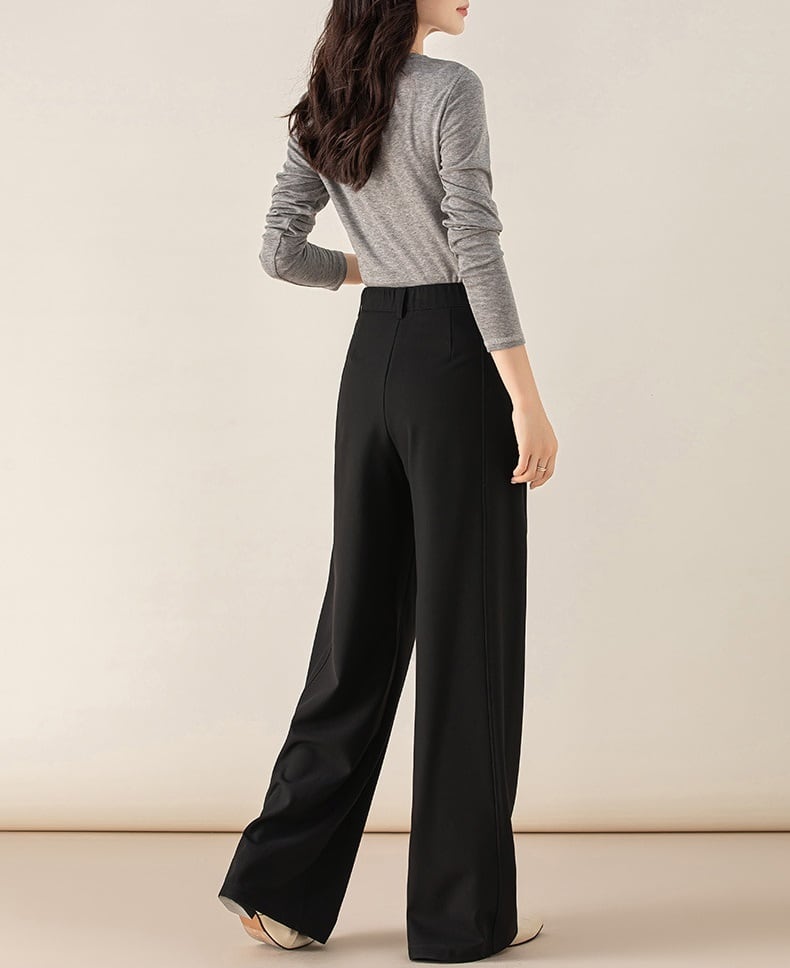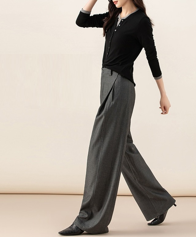 このパンツは、サイドタックとハイウエストデザインが特徴的で、スタイルを美しく魅せるアイテムです。ストレートシルエットが脚をすっきりと見せ、カジュアルからフォーマルまで幅広く活躍します。シンプルながらも上品な印象を与え、春、秋、冬とシーズンを問わず、通勤やデート、お出かけなどさまざまなシーンで重宝すること間違いありません。