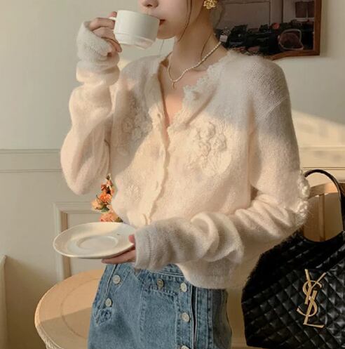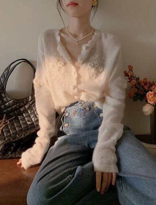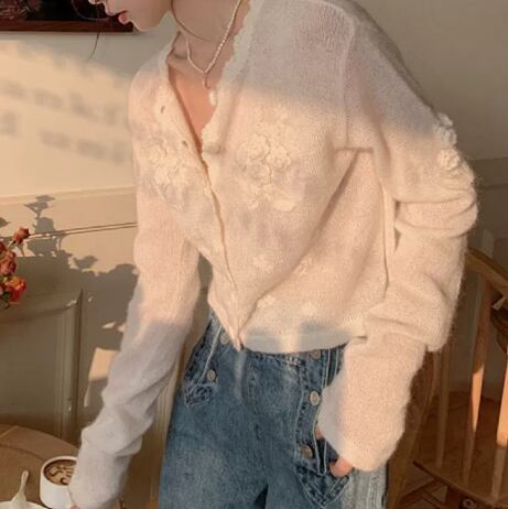おしゃれで大人可愛い「フラワーモチーフ 立体 刺繍 長袖 ニットカーディガン」のご紹介です!