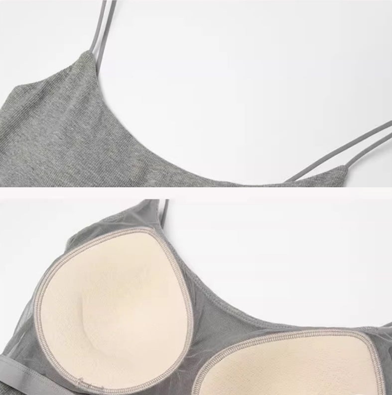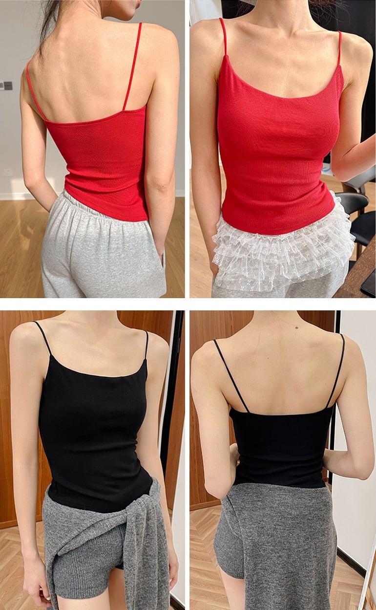 薄手と厚手の2タイプから選べる、おしゃれで大人可愛い「 パッド付き 細ストラップ ショート丈 キャミソール」のご紹介です!