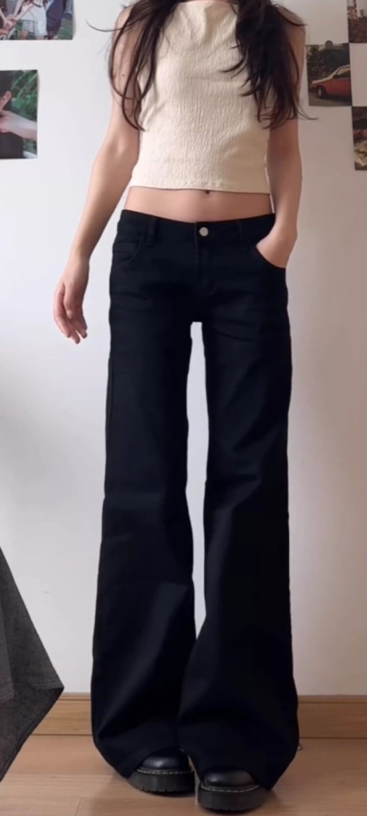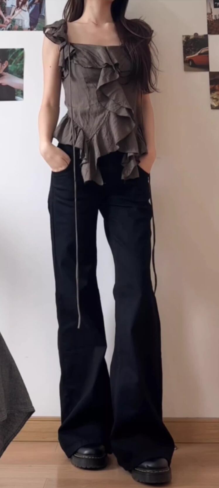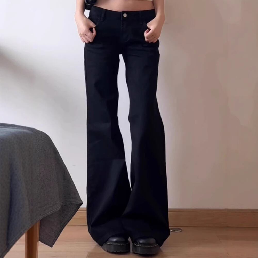 このデニムパンツは、ローライズのワイドフレアデザインが特徴で、シンプルながらもこなれ感を演出。スタイルアップ効果もあり、体型をカバーする美脚シルエットが魅力です☆カジュアルなコーディネートからおしゃれなデートスタイルまで、幅広く活躍するアイテムです。