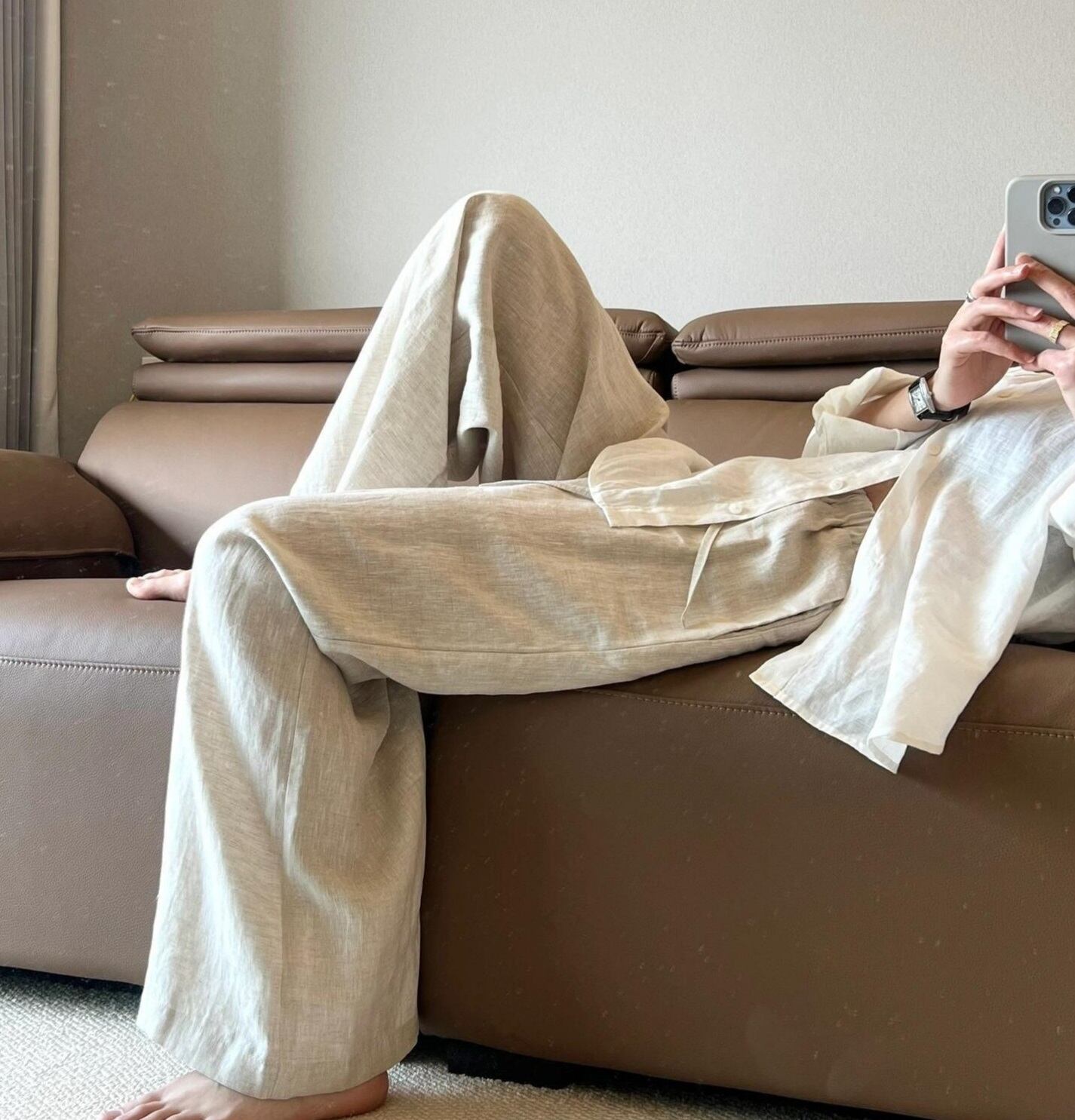 このパンツは、ハイウエストのワイドシルエットが特徴で、軽やかな綿麻素材が心地よい着心地を実現します☆ドレープ感が美しく、体型カバーもお手のもの。ポケット付きで実用性も高く、カジュアルながらもおしゃれな印象を与えるアイテムです!シンプルなデザインで、様々なシーンに活躍すること間違いなしです。