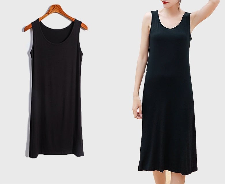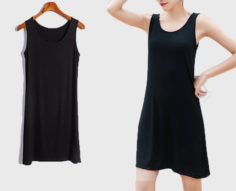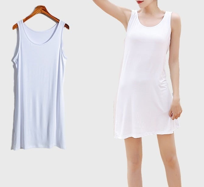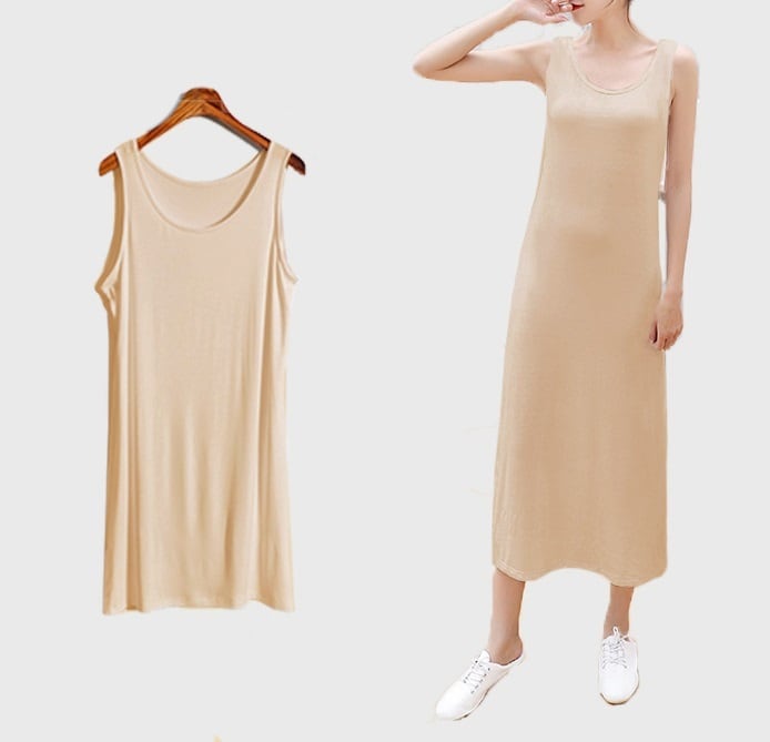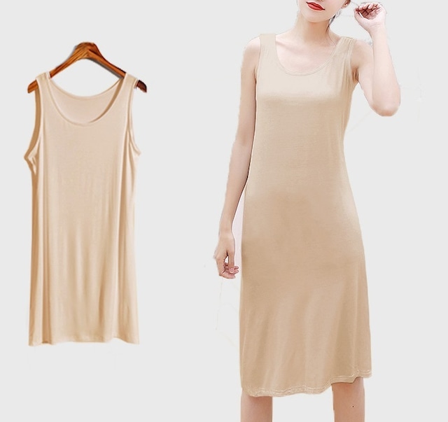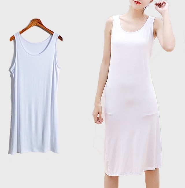 3サイズの丈感から選べる おしゃれで大人可愛い、「ラウンドネック ノースリーブ インナーワンピース」のご案内です!