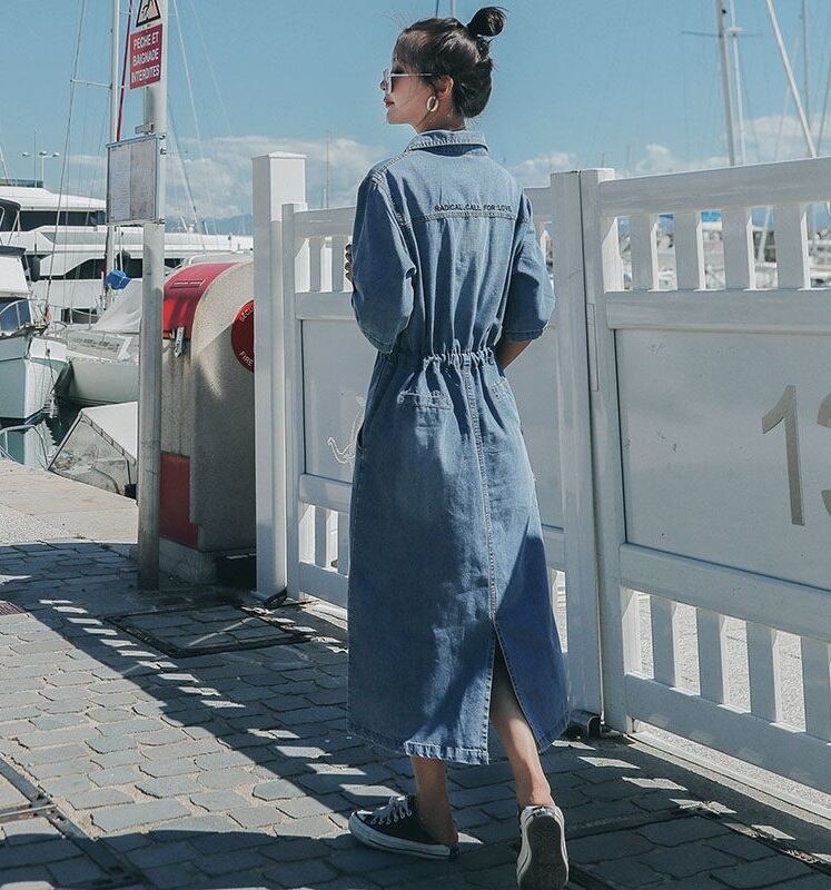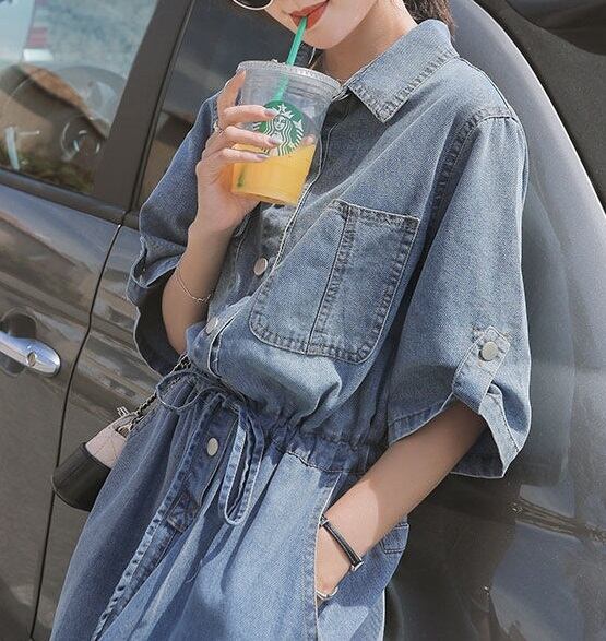 ウエストリボン ミモレ丈 五分袖 デニムワンピース レディース ワンピース シャツ サマーワンピ 膝下 ミモレ 半袖 5分袖 襟付き 角襟 切り替え リボン スリット バックスリット ポケット ハイウエスト ウエストゴム デニム ブルーデニム かわいい 大人可愛い シンプル カジュアル おしゃれ レトロ こなれ感 無地 春 夏 秋 ママ 通勤 学生 学校 通学 デート お出かけ 旅行 公園 女子会 休日 ショッピング カフェ 重ね着 楽ちん 体型カバー 脚長 普段使い 着回し S M L ゆったり ブルー