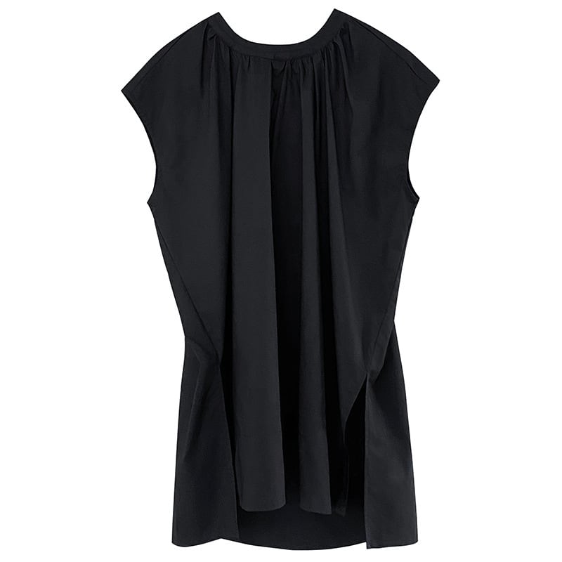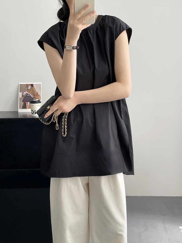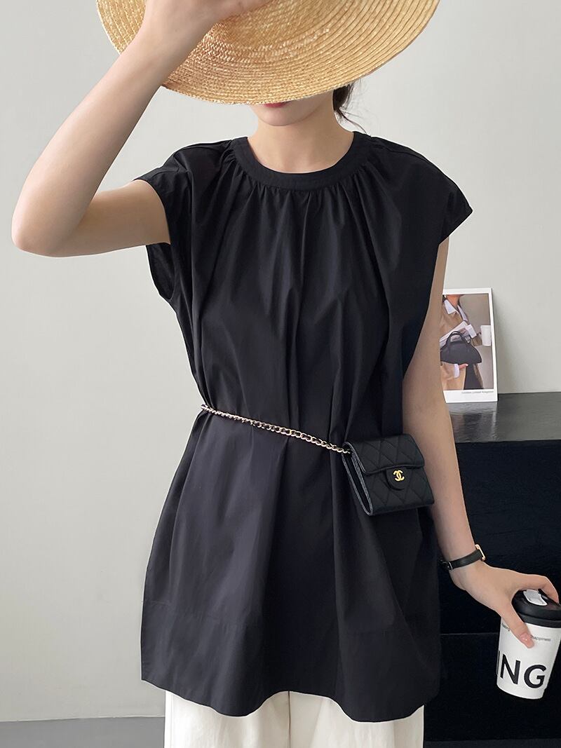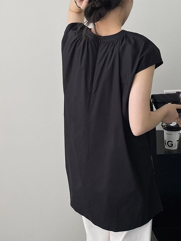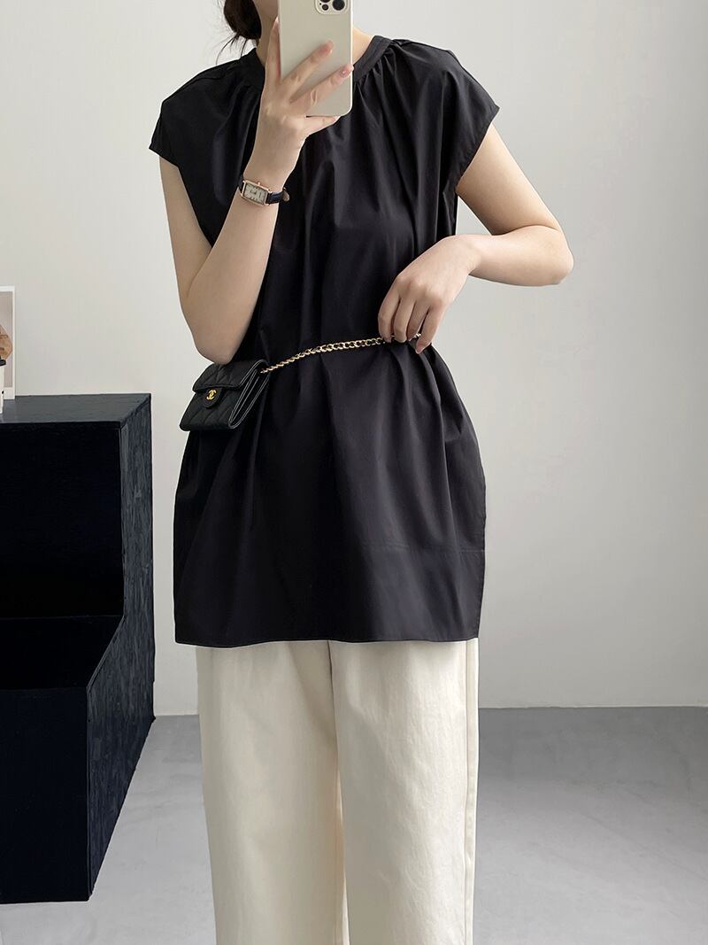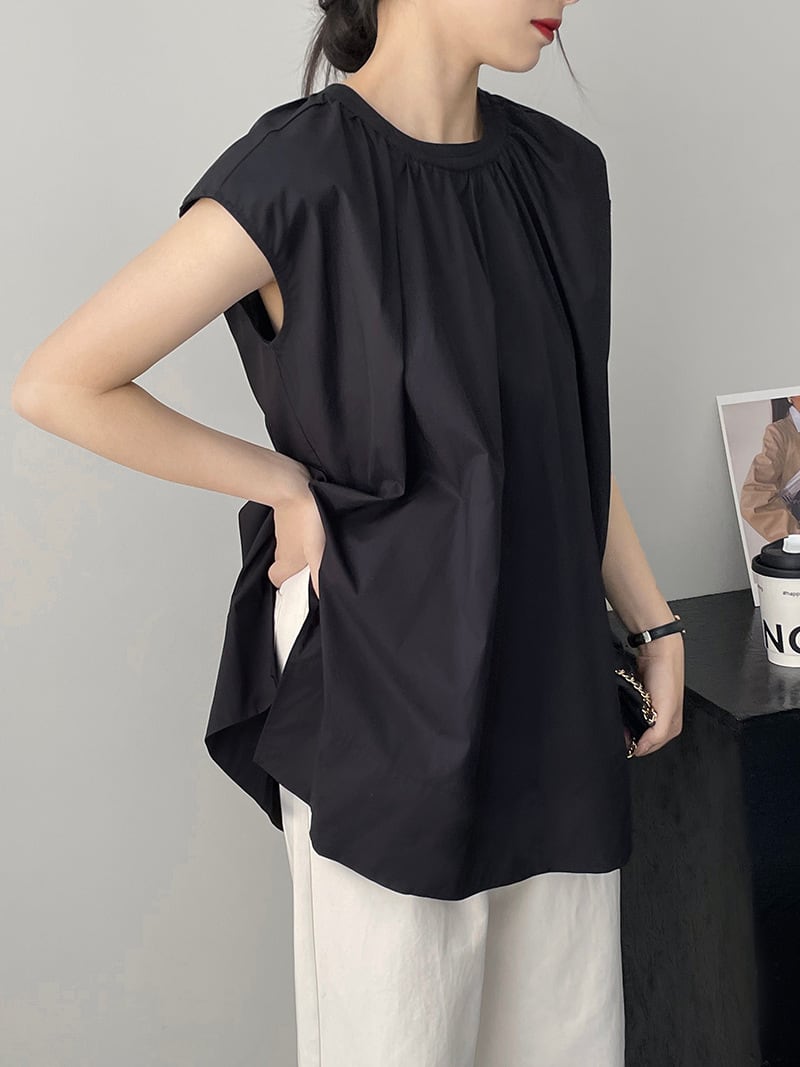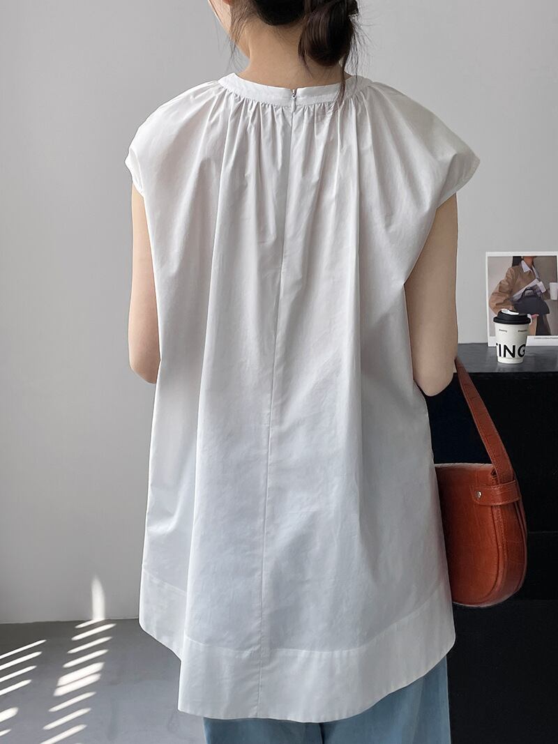スリット入り ラウンドネック フレンチスリーブ シャツ ブラウス レディース トップス プルオーバー チュニック 丈長 ミディアム 袖なし ノースリーブ 襟なし ドレープ スリット サイドスリット ギャザー 綿 コットン かわいい 大人可愛い きれいめ シンプル カジュアル おしゃれ こなれ感 ルーズ ナチュラル 無地 春 夏 秋 ママ 通勤 学生 学校 通学 デート お出かけ 旅行 公園 女子会 休日 重ね着 楽ちん 体型カバー 普段使い 着回し レイヤード M L ゆったり 白 ホワイト 黒 ブラック