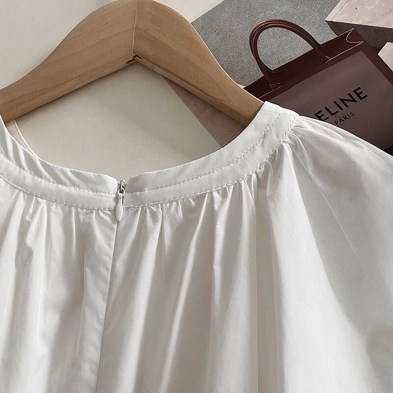 おしゃれで可愛い「スリット入り ラウンドネック フレンチスリーブ シャツ ブラウス」のご案内です!スリット入りのデザインが魅力的なこのトップスは、ラウンドネックとフレンチスリーブで大人可愛い印象を与えます。普段使いや通勤、学校、デートなど、様々なシーンで活躍する一枚です☆