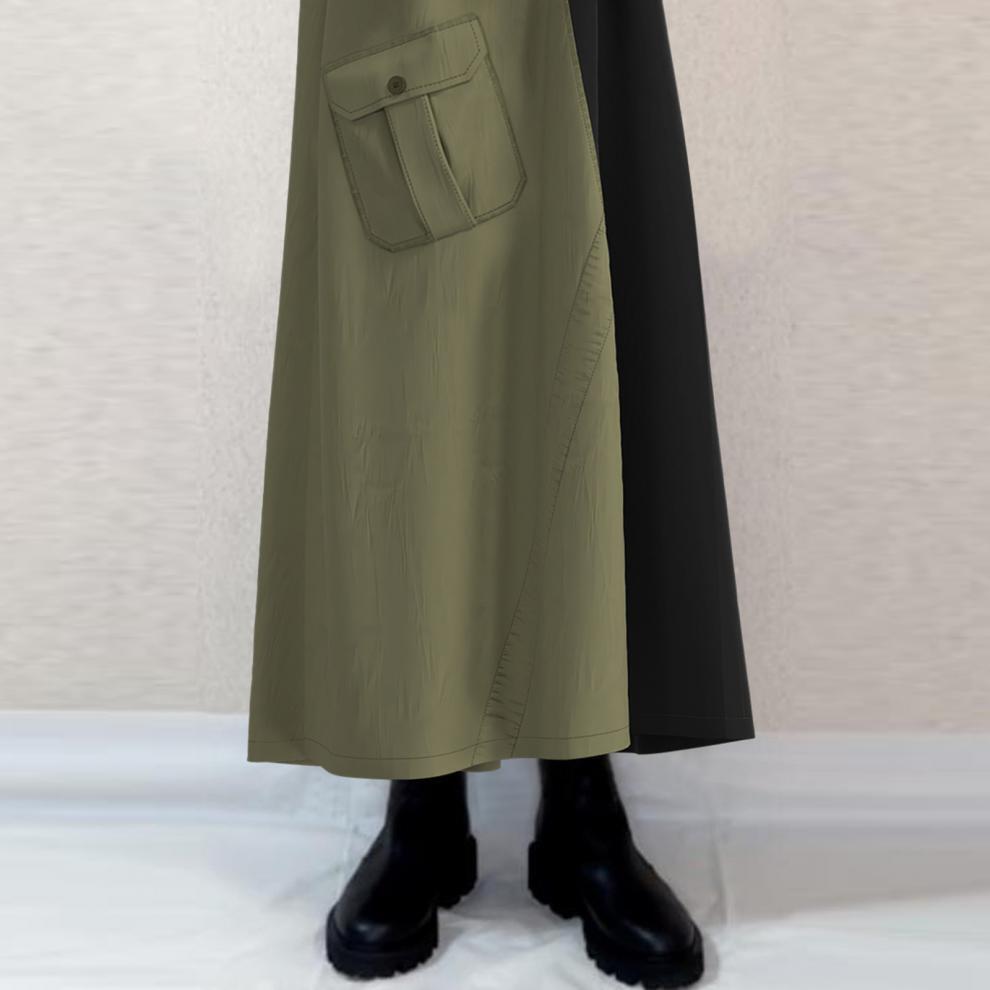 異素材ミックスの切り替えデザインとバイカラー配色が個性的で、通勤や通学、デート、お出かけ、女子会など、さまざまなシーンで主役級の存在感を発揮します!ポケット付きで便利さも兼ね備えているので、普段使いにもぴったりです。