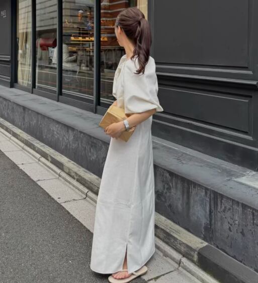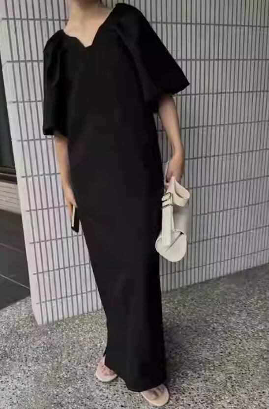 このワンピースは、Vネックと五分袖、さらにはスリットが施されたマキシ丈というデザインが特徴です。Iラインのシルエットは、普段使いや通勤、お出かけ、デートなど、多彩なシーンで大活躍します♪ゆったりとした着心地と体型カバー効果があり、女性らしさを引き立て、自信に満ちたスタイルを提供します。