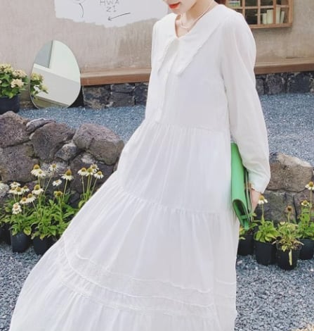 大きめ襟 花柄 レース 長袖 ティアードワンピース レディース ワンピース 膝上 ミモレ 襟付き Aライン 切り替え ティアード フェミニン レース ハイウエスト ボタン ギャザー かわいい 大人可愛い シンプル カジュアル 上品 おしゃれ ガーリー 主役級 存在感 ラブリー キュート フラワー チェック 春 秋 ママ 通勤 学生 学校 通学 デート お出かけ 旅行 公園 女子会 休日 ショッピング お花見 重ね着 楽ちん 体型カバー 普段使い 着回し 清楚 S M L XL ゆったり 白 ホワイト