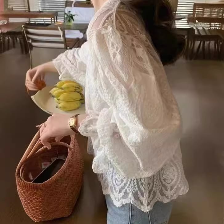 小花柄 透かし編みレース 長袖 ブラウス レディース トップス プルオーバー ミディアム 長袖 フレアスリーブ ラウンドネック 襟なし フェミニン レース 刺繍 透け感 シースルー 透かし編み 薄手 かわいい 大人可愛い きれいめ シンプル カジュアル 上品 おしゃれ こなれ感 ルーズ 花柄 フラワー 春 秋 ママ 通勤 学生 学校 通学 デート お出かけ 旅行 公園 女子会 休日 お花見 重ね着 韓国 体型カバー 普段使い 着回し レイヤード S M L XL ゆったり 白 ホワイト アプリコット