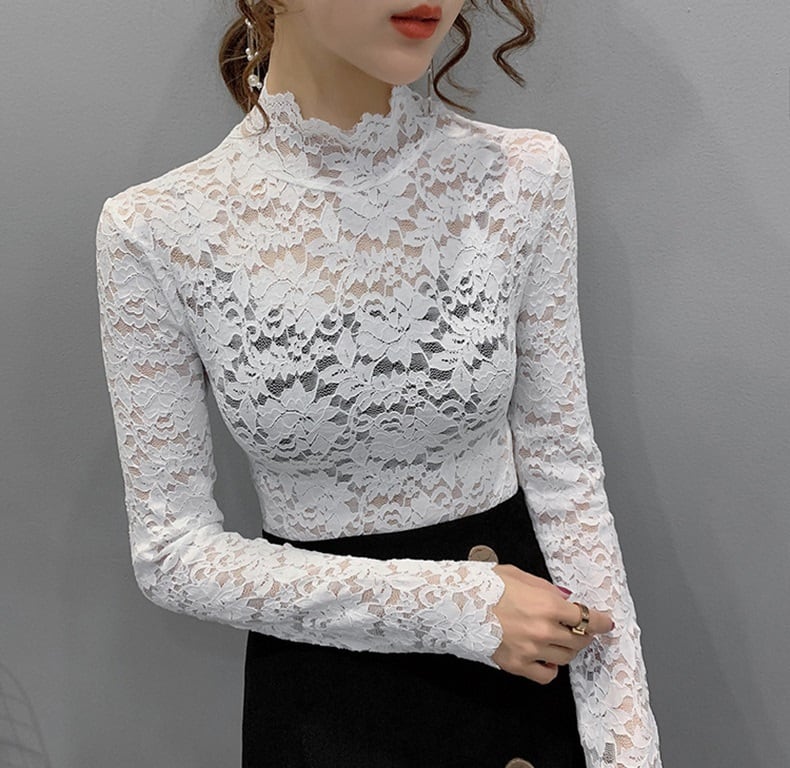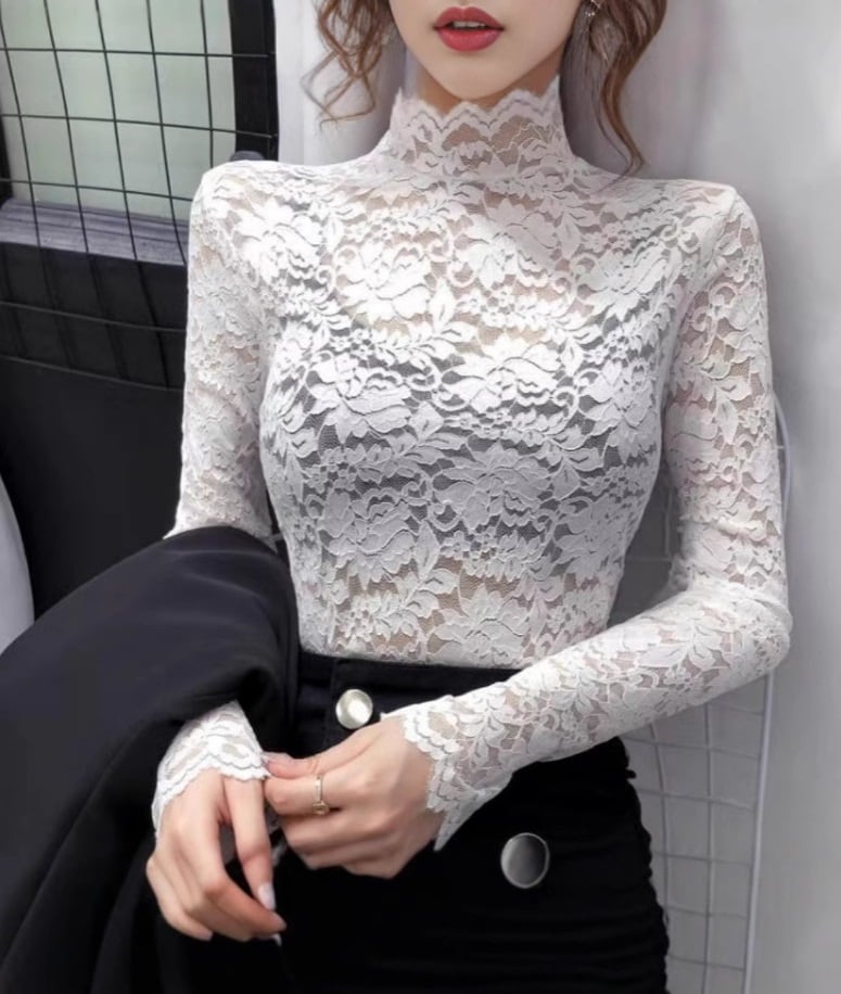 ハイネック 透かし編み レース 長袖 トップス レディース ブラウス プルオーバー インナー 襟付き スタンドカラー スリム フェミニン 透け感 シースルー 薄手 かわいい 大人可愛い きれいめ シンプル カジュアル 上品 おしゃれ ガーリー 花柄 フラワー 春 秋 冬 ママ 通勤 学生 学校 通学 デート お出かけ 旅行 公園 女子会 休日 重ね着 韓国 普段使い 着回し S M L XL 2XL 3XL 大きいサイズ 白 ホワイト 黒 ブラック ピンク アプリコット ネイビー 緑 ダークグリーン