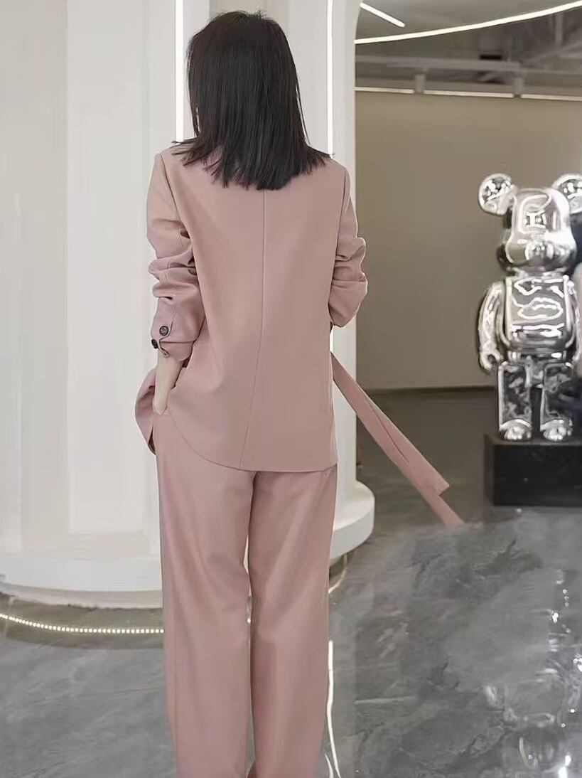 大人可愛いスーツ セットアップ、「腰ひも付き ジャケット ロングパンツ 2点セット」のご紹介です!こちらの上下セットは、春・秋・冬のさまざまなシーンで活躍するアイテムです☆