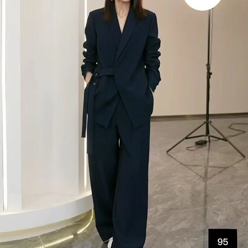 スーツ セットアップ 腰ひも付き ジャケット ロングパンツ 2点セット 上下セット レディース パンツ ボトムス アウター テーラードジャケット ワイドパンツ ロング 長袖 Vネック 前開き かわいい 大人可愛い シンプル カジュアル 上品 おしゃれ かっこいい マニッシュ 無地 春 秋 冬 授業参観 ママ 通勤 学生 学校 通学 デート お出かけ 女子会 休日 韓国 体型カバー 普段使い 着回し M L XL 2XL 3XL 4XL 5XL 6XL 大きいサイズ ゆったり 黒 ブラック ネイビー