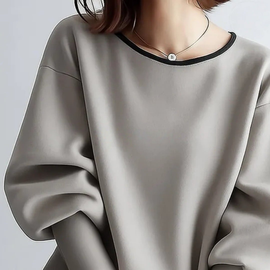 大人可愛い「バイカラー トリム 長袖 ルーズ トレーナー」のご紹介です!こちらのトレーナーは、春・秋・冬のさまざまなシーンで活躍する、シンプルでおしゃれなアイテムです☆