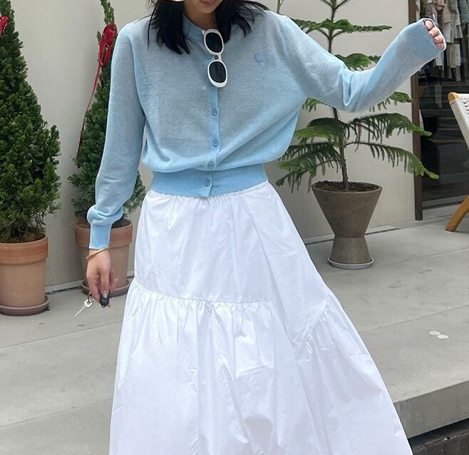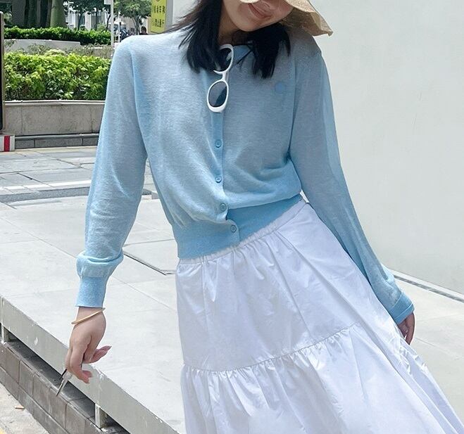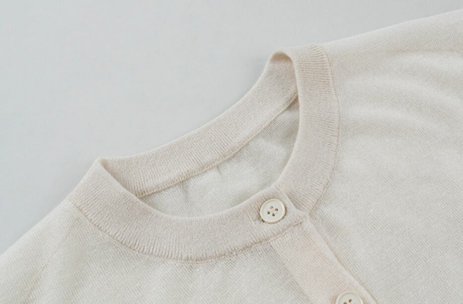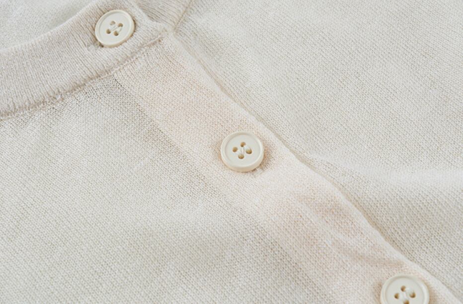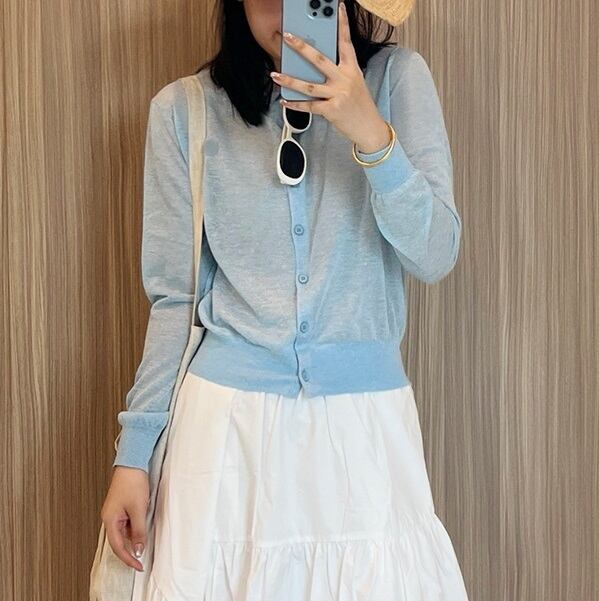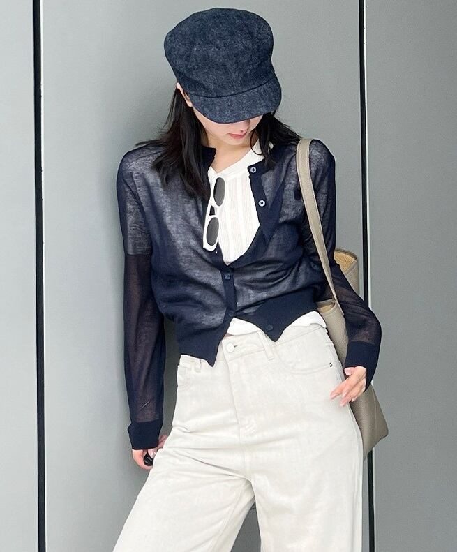 大人可愛い「薄手 リネン ラウンドネック シアー ニットカーディガン」のご紹介です!こちらのカーディガンは、春・夏・秋のさまざまなシーンで活躍する、シンプルでカジュアルなおしゃれアイテムです☆