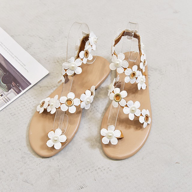 靴 フラワー付き サンダル ビーチサンダル ローヒール