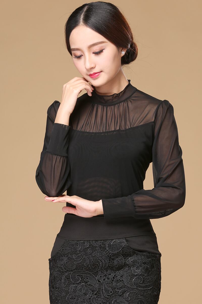 トップス ロングTシャツ シースルー ロンT 透け感 半ハイネック 長袖 袖あり スリム シンプル 無地 ベーシック 通勤 通学 OL オフィス レディース 女性用 普段使い 着回し 春 秋 ワンサイズ ブラック 黒 3201