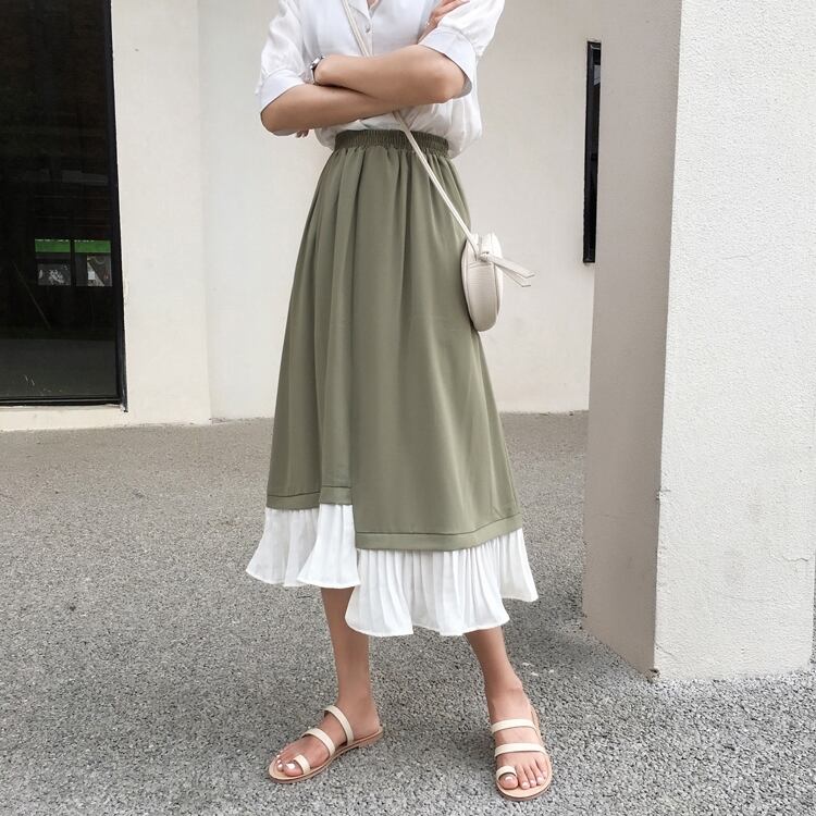 プリーツ切り替えで可愛く仕上がったミディスカート?