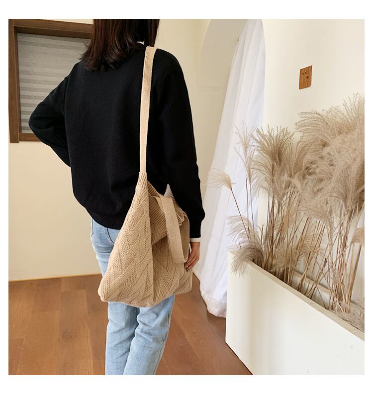 ショルダー バッグ 大きめ ハンドバッグ 大容量 ニット 大人可愛い きれいめ シンプル カジュアル 上品 おしゃれ こなれ感 オールシーズン OL 通勤 デート お出かけ 公園デビュー 大学 通学 マザーズバッグ マタニティ ブラック ブラウン ベ 1151