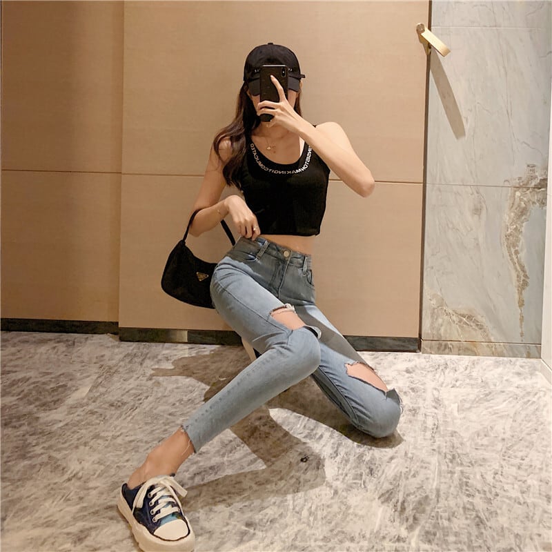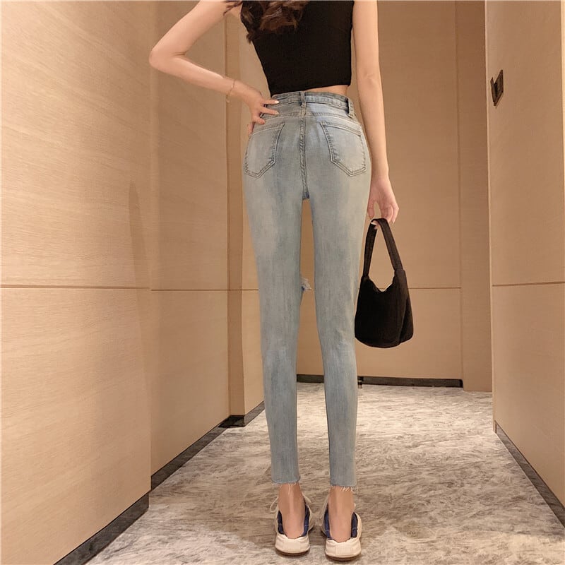 ボトムス スキニーパンツ デニム パンツ ハイウエスト 脚長 美脚 ダメージ クラッシュ 9分丈 切りっぱなし デザイン 細身 タイト ポケット付き カジュアル レディース お出かけ 通勤 通学 学生 普段使い 普段着 着回し 休日 旅行 おしゃれ お洒落 10代 20代 春 夏 S M L XL ライ 3219