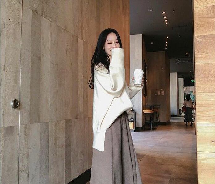 #レディースニットプルオーバー #長袖 #シンプル #クルーネック #ラウンドネック