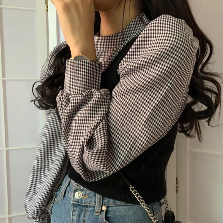 セットアップ シャツ ブラウス × ニット ビスチェ キャミソール ツーピース 2点セット 袖あり 長袖 パフスリーブ パフ袖 半ハイネック ハーフハイネック 大人 ガーリー 大人可愛い かわいい 可愛い 通勤 通学 お出かけ デート 女子会 旅行 普段使い 着回し レディース ファッション レイヤード 重ね着 コーデ 10代 20代 春 秋 冬 ワンサイズ ブラック×チェック柄 黒 グリーン× 3229