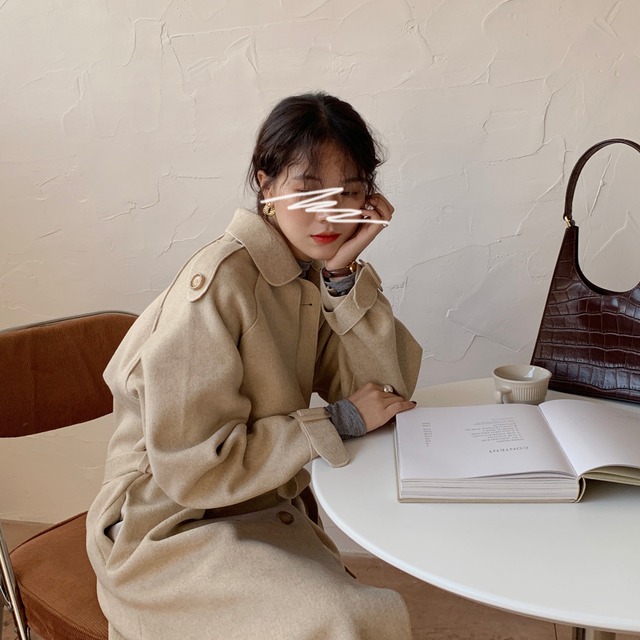アウター レディース コート ウール ダブルブレスト ロングコート トレンチコート 韓国 オルチャン フロントボタン ベルト 無地 シンプル ゆったり ゆる ルーズ 襟付き 長袖 袖あり こなれ感 大人 上品 可愛い 通勤 通学 学生 お出かけ デート 着回し 普段使い 旅行 10代 20代 秋 冬 ワンサイズ ベージュ コーヒー 3230