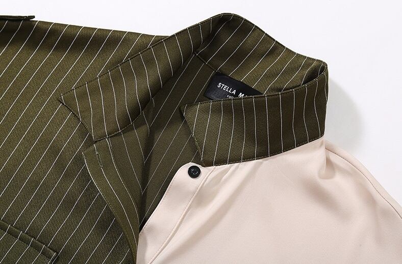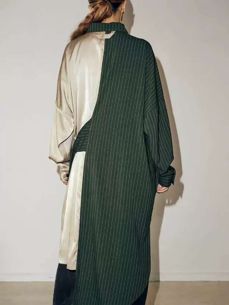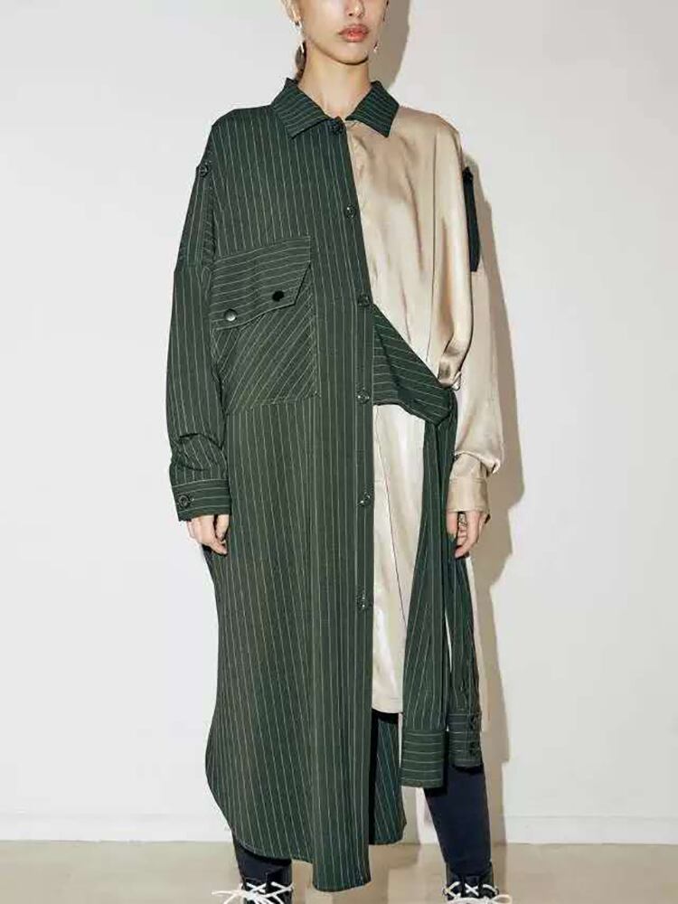 ワンピース ロング シャツ アシメ シャツワンピ ストライプ アシンメトリー 不規則 異素材MIX 個性的 襟付き ポロ襟 長袖 袖あり フロントボタン おしゃれ お洒落 カジュアル ゆったり ルーズ ゆるシルエット 体型カバー 通勤 通学 学生 普段着 お出かけ 休日 10代 20代 春 秋 ワンサイズ 3237